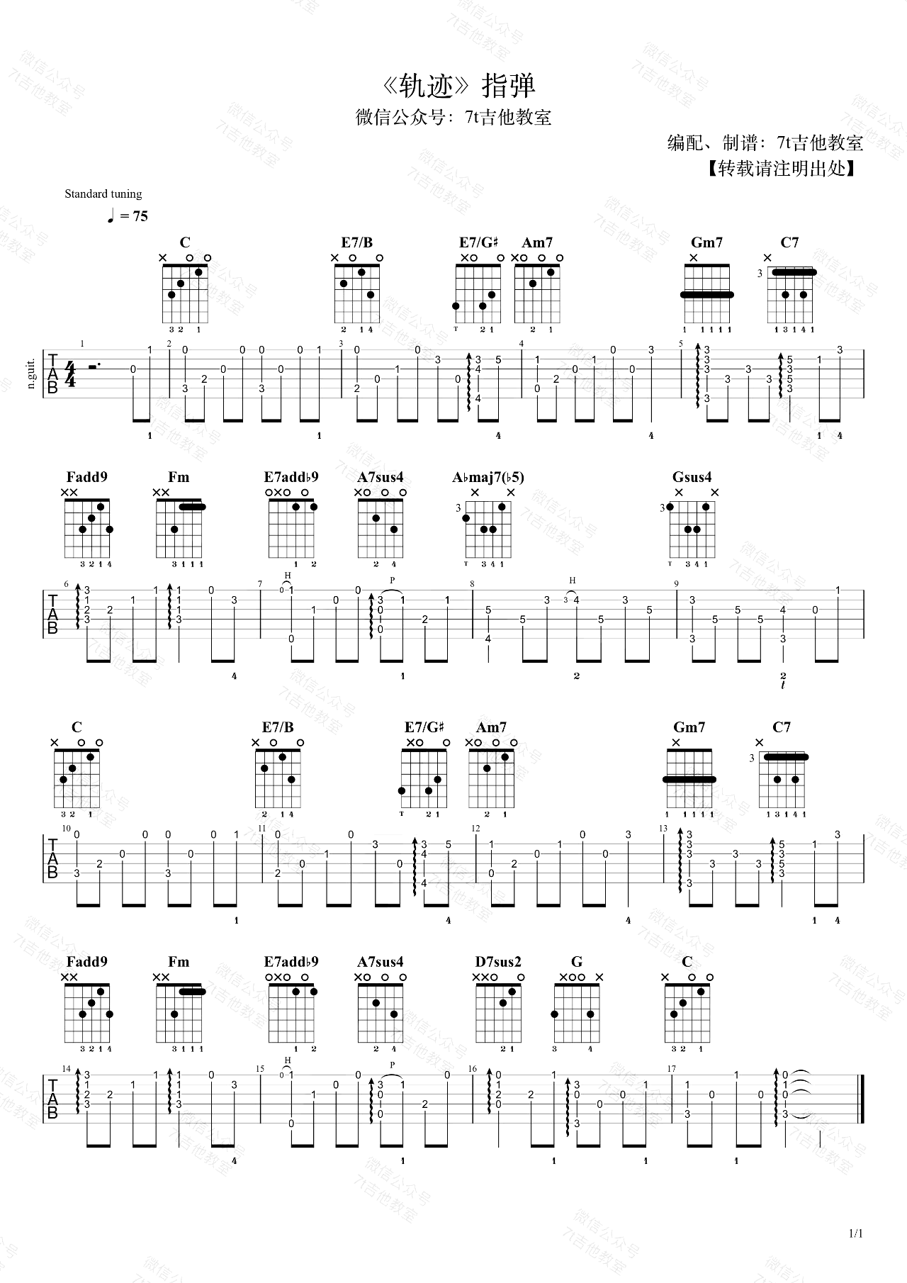 吉他轨迹指弹谱_周杰伦_吉他独奏谱