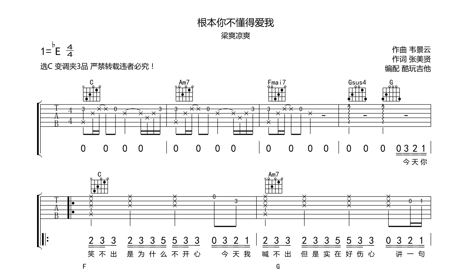 吉他根本你不懂得爱我吉他谱-梁爽凉爽