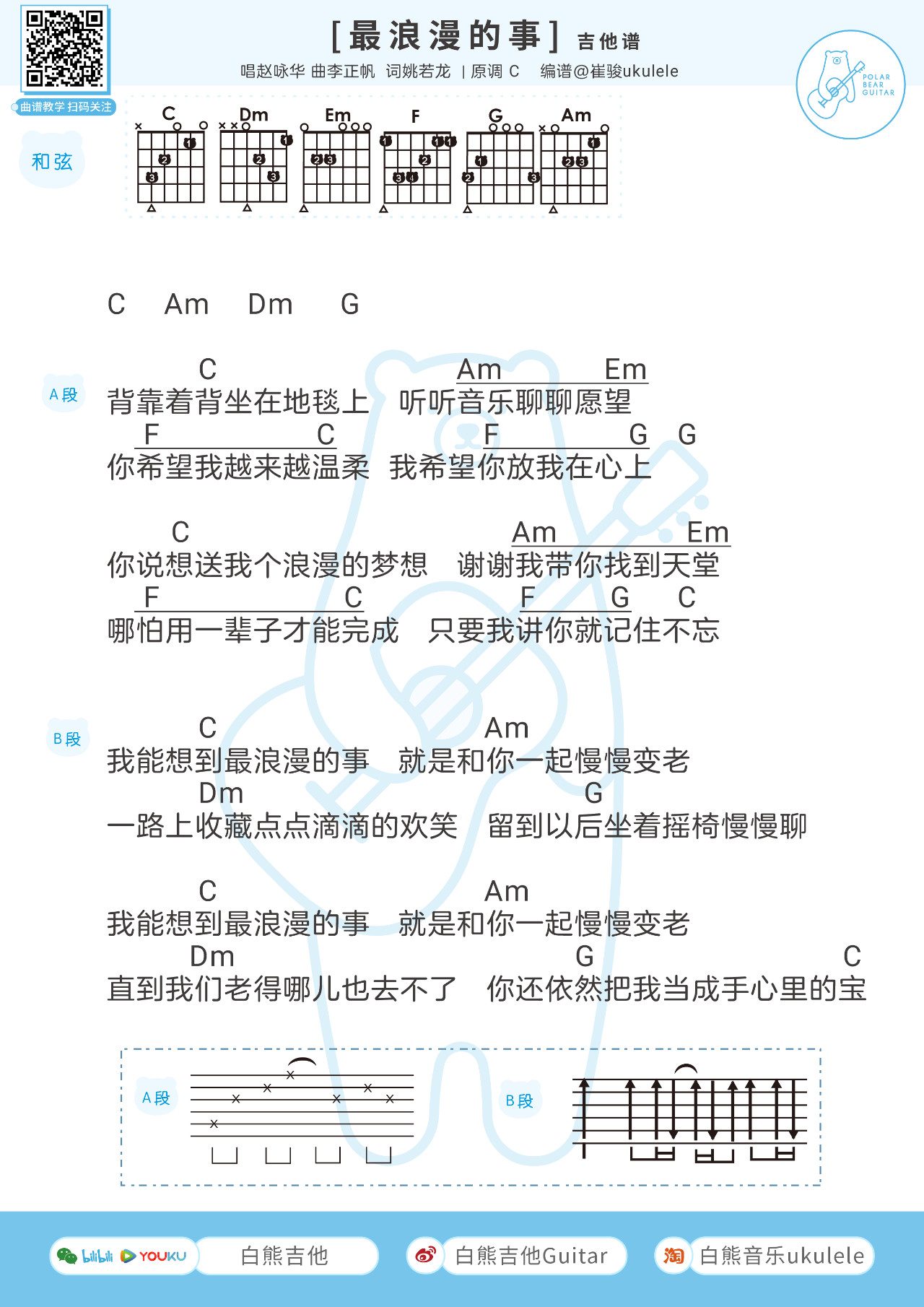 吉他赵咏华《最浪漫的事》吉他谱 C调简单版和弦谱