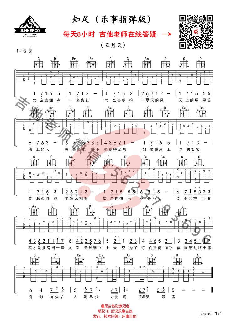 五月天《知足》吉他谱出来了!采用G调指法编配,主要和弦有G、D、Em、Am、Bm等和弦。是五迷就玩指弹吧...