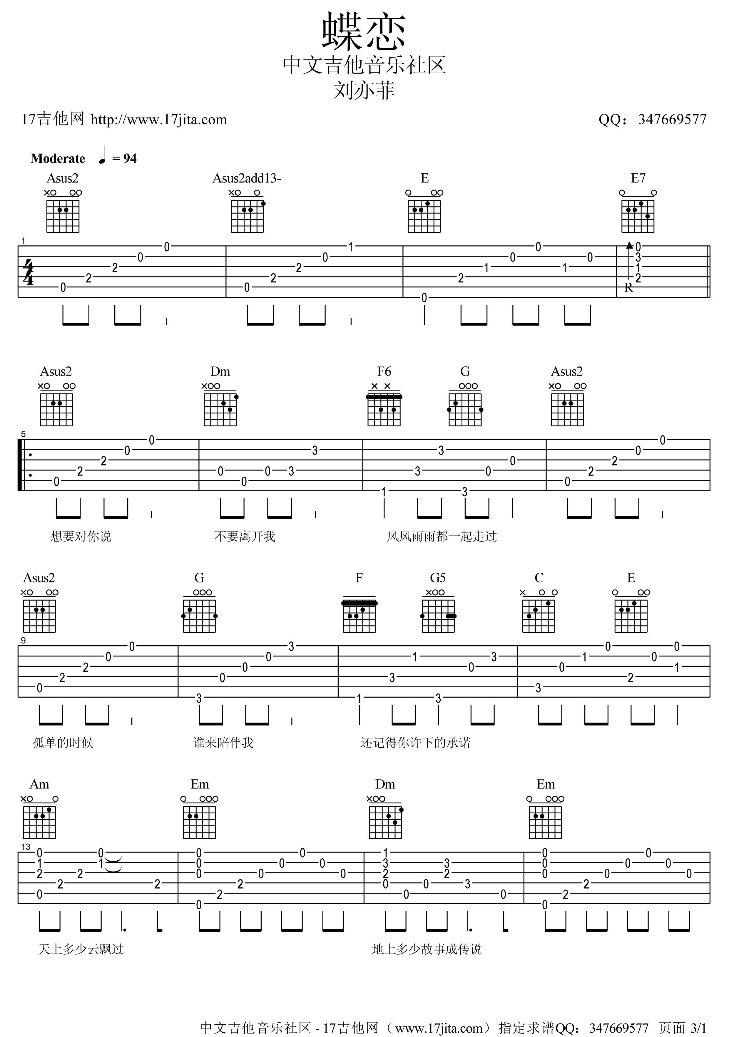 歌曲原调E调,吉他谱采用C调指法编配,变调夹4品为原调,三张高清图片谱,由吉他专家编配并分享。...