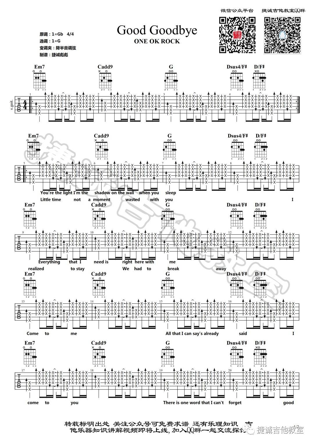 吉他《Good Goodbye》 One Ok Rock 吉他谱