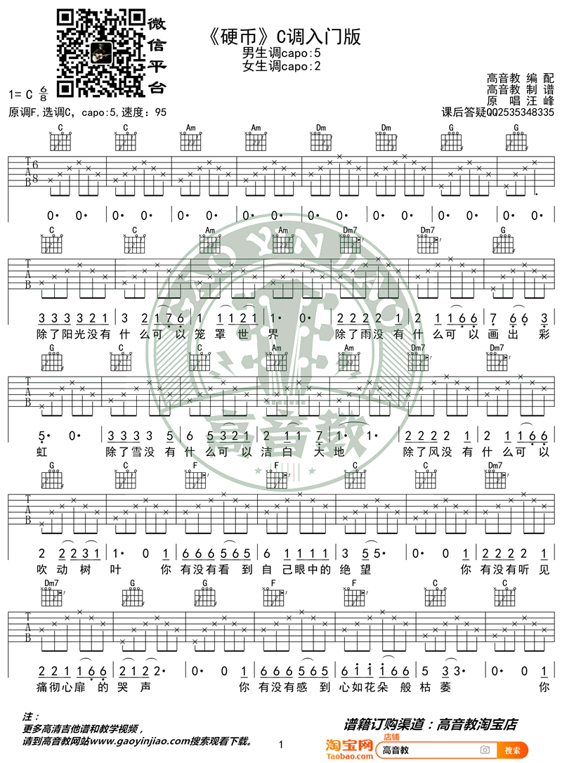 吉他硬币 吉他谱 汪峰