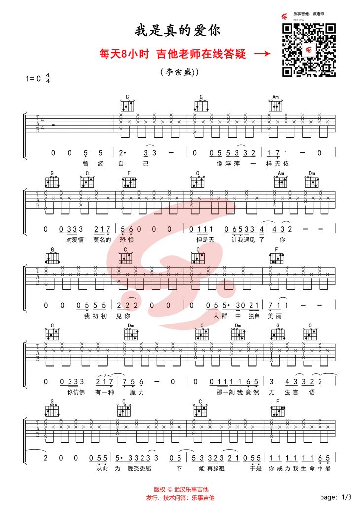 吉他我是真的爱你 吉他谱 李宗盛