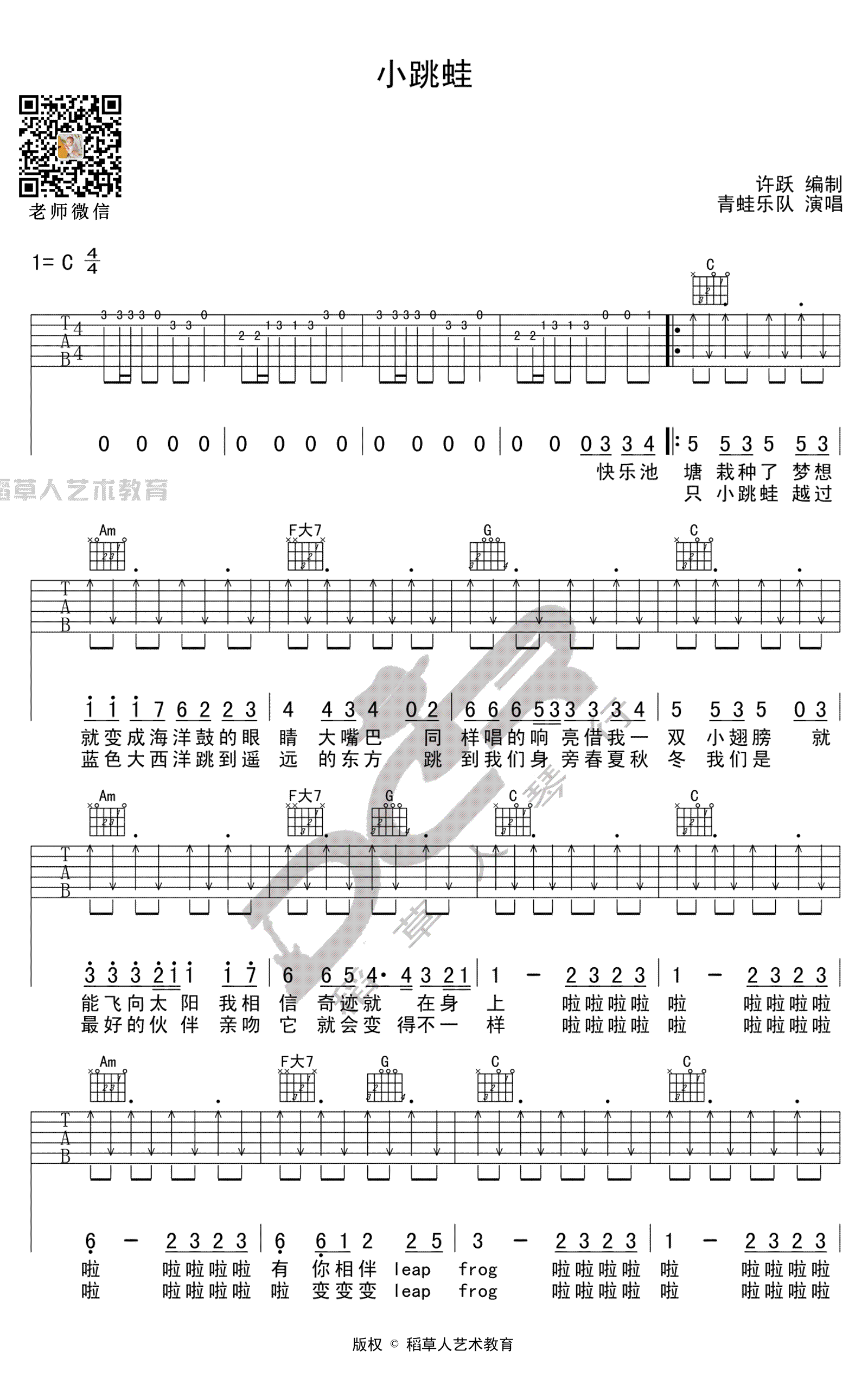 吉他小跳蛙 吉他谱 青蛙乐队