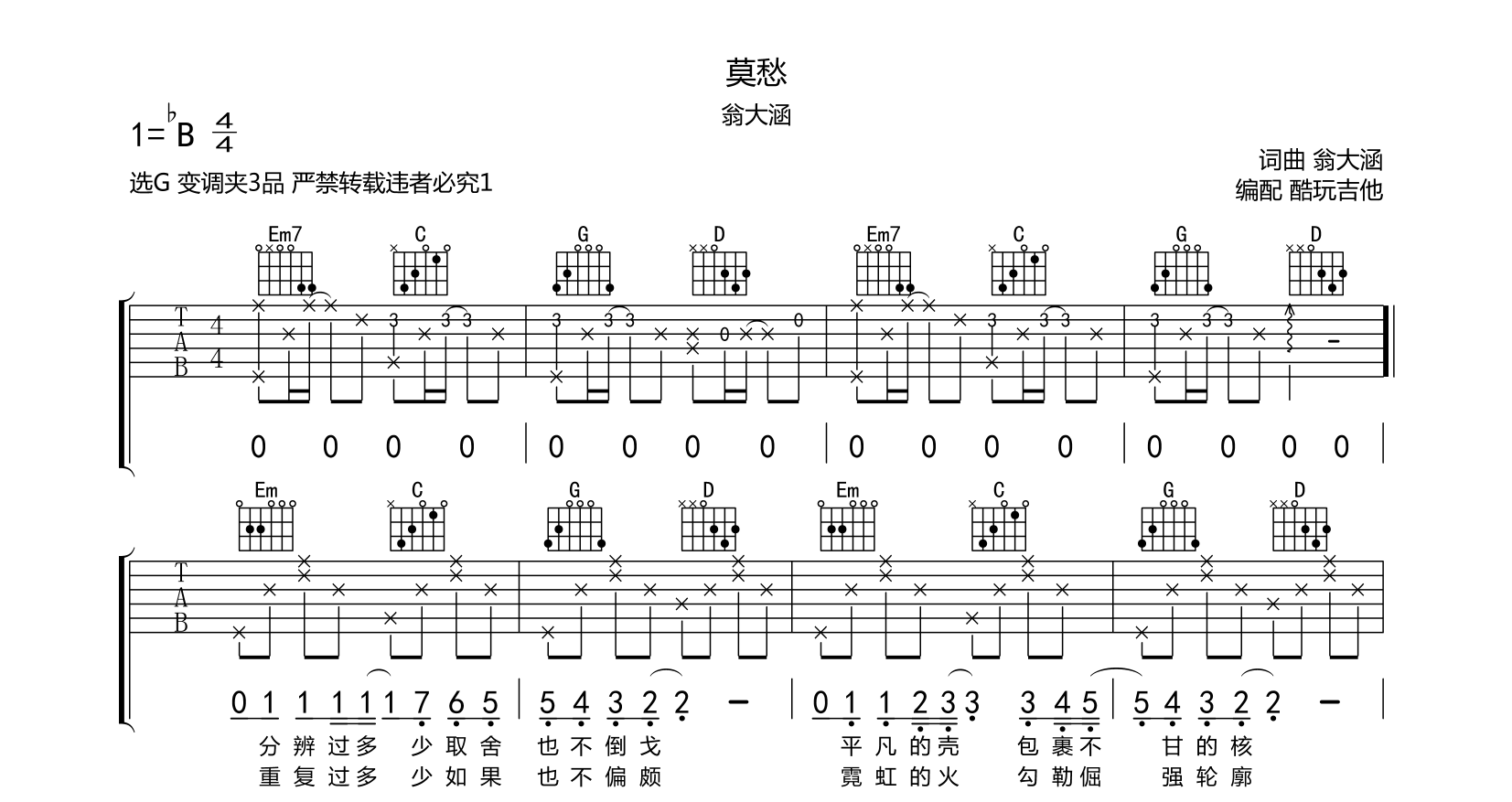 吉他莫愁 吉他谱 翁大涵