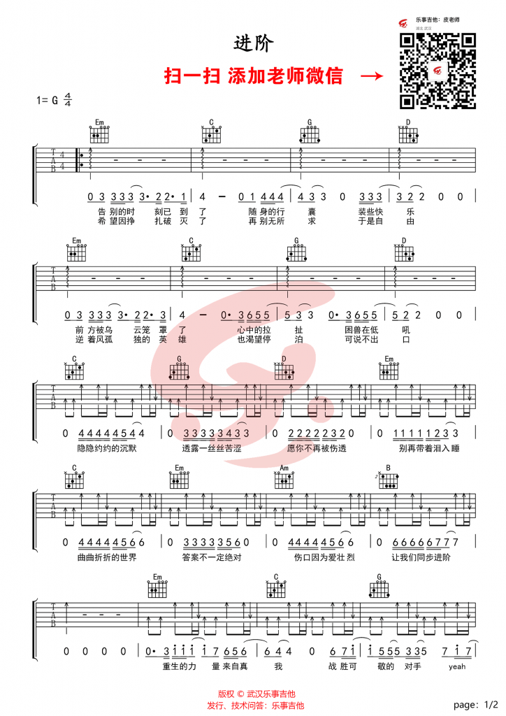 吉他许巍《救赎之旅》吉他谱 G调弹唱谱