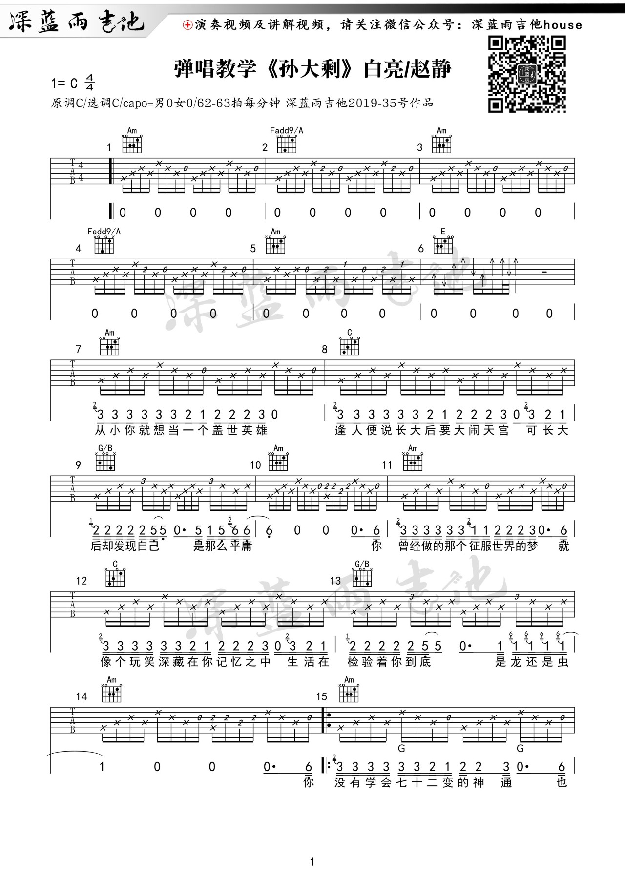 吉他孙大剩 白亮/赵静 吉他谱 C调弹唱谱
