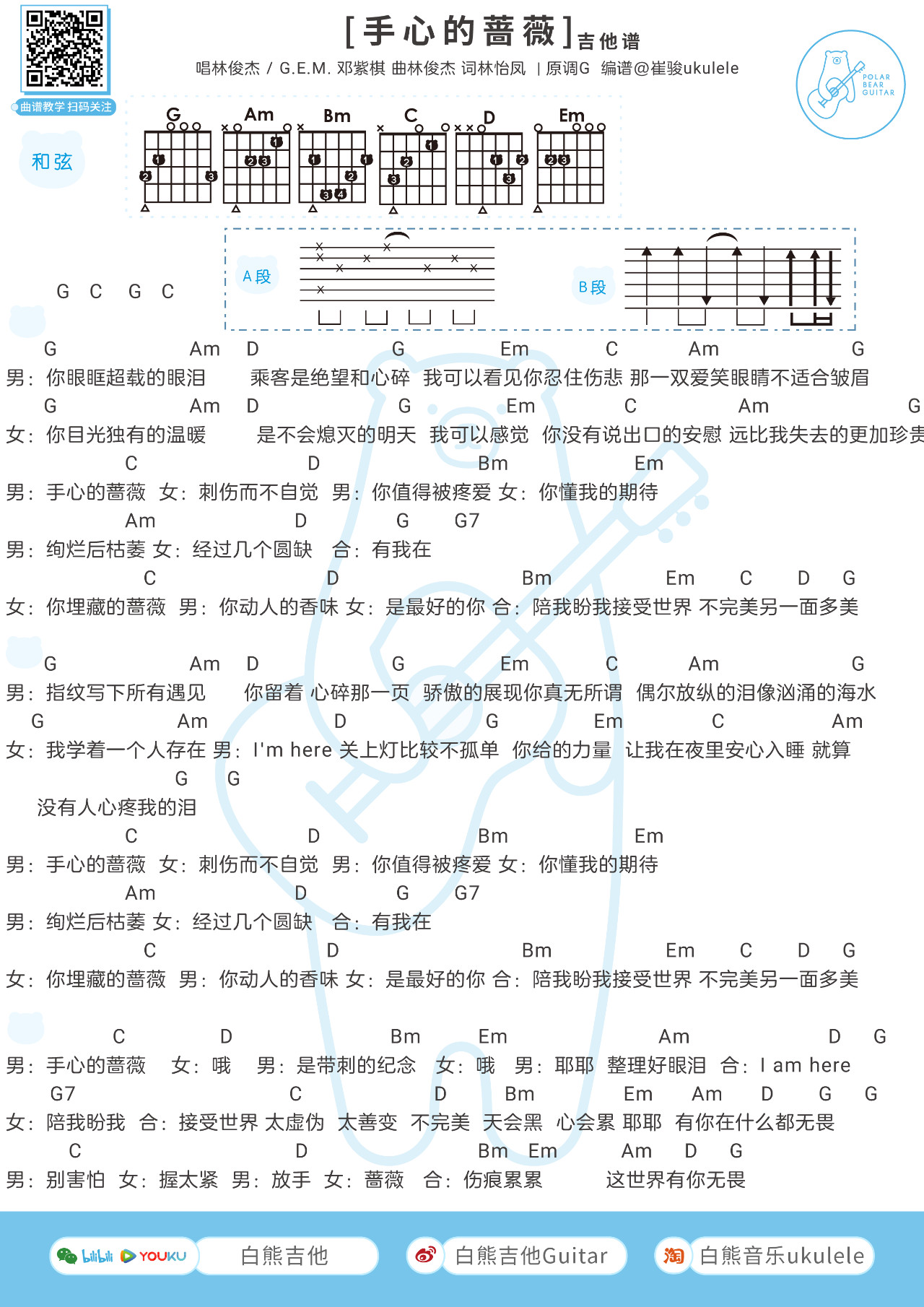 吉他邓紫棋&林俊杰《手心的蔷薇》吉他谱 附节奏