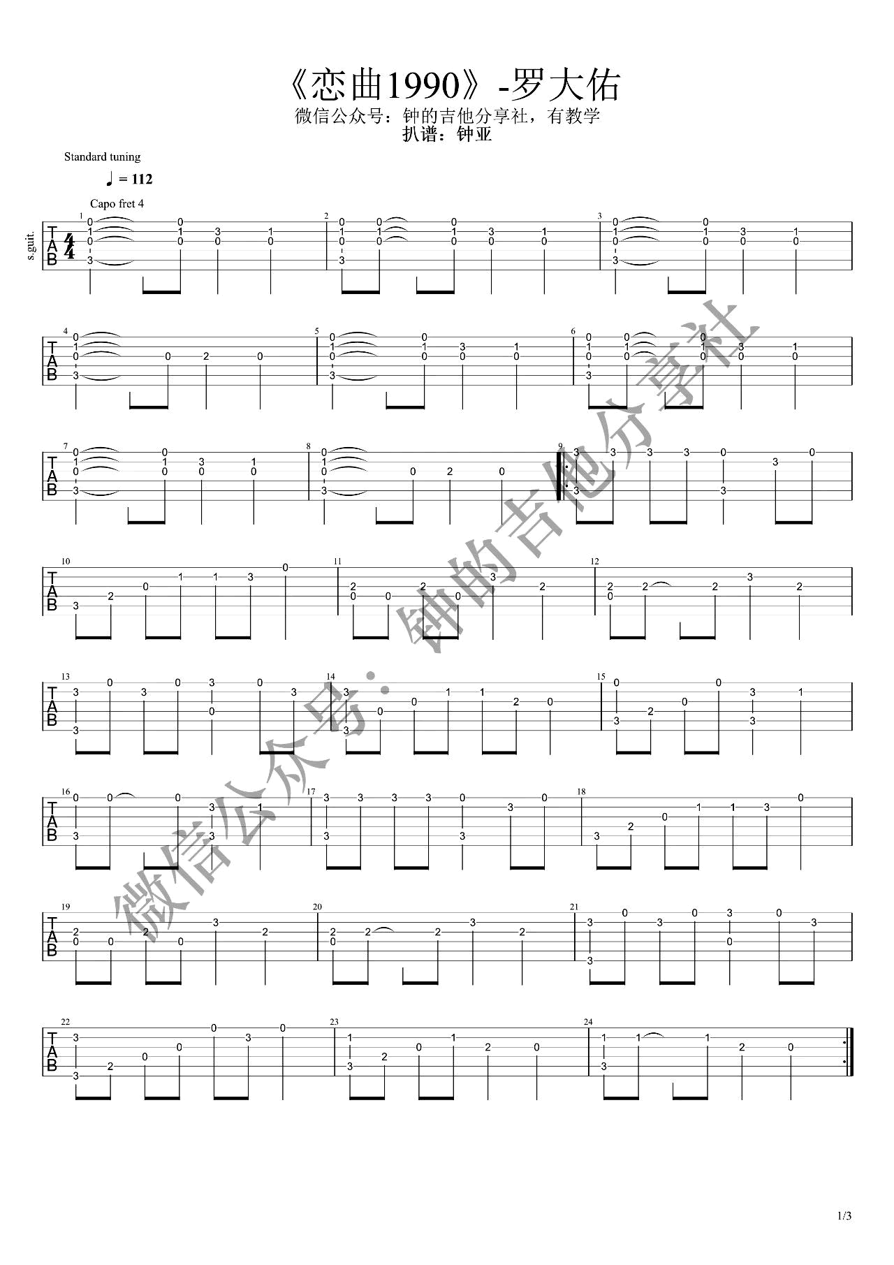 吉他恋曲1990指弹谱_罗大佑
