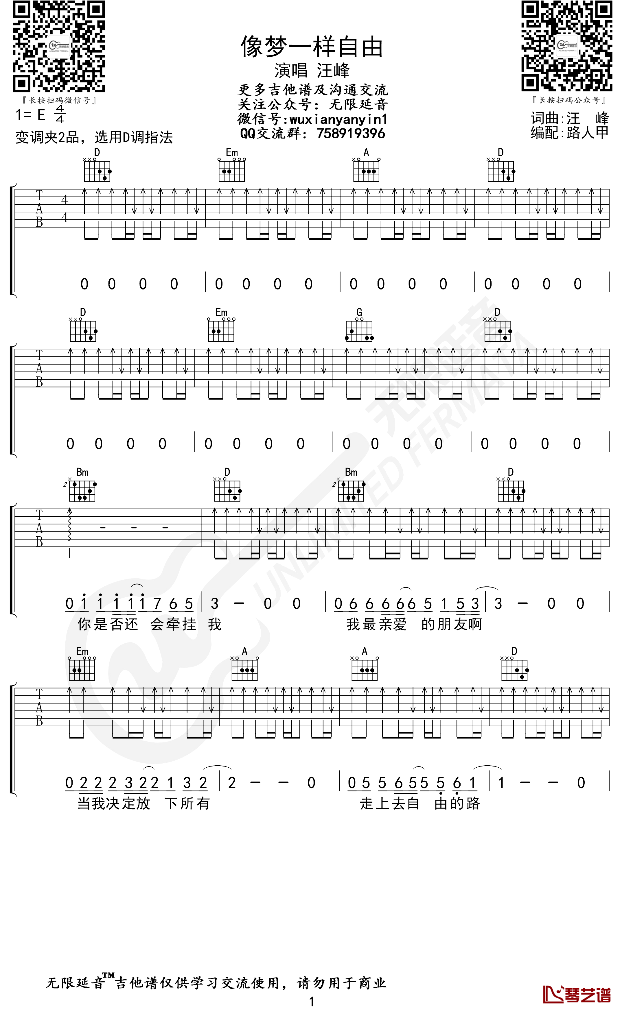 吉他像梦一样自由 吉他谱
