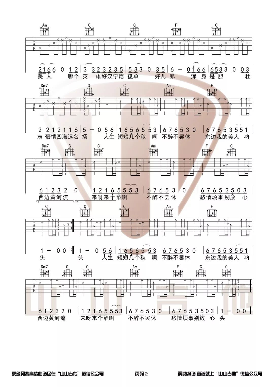 吉他李丽芬《爱江山更爱美人》吉他谱 C调弹唱谱