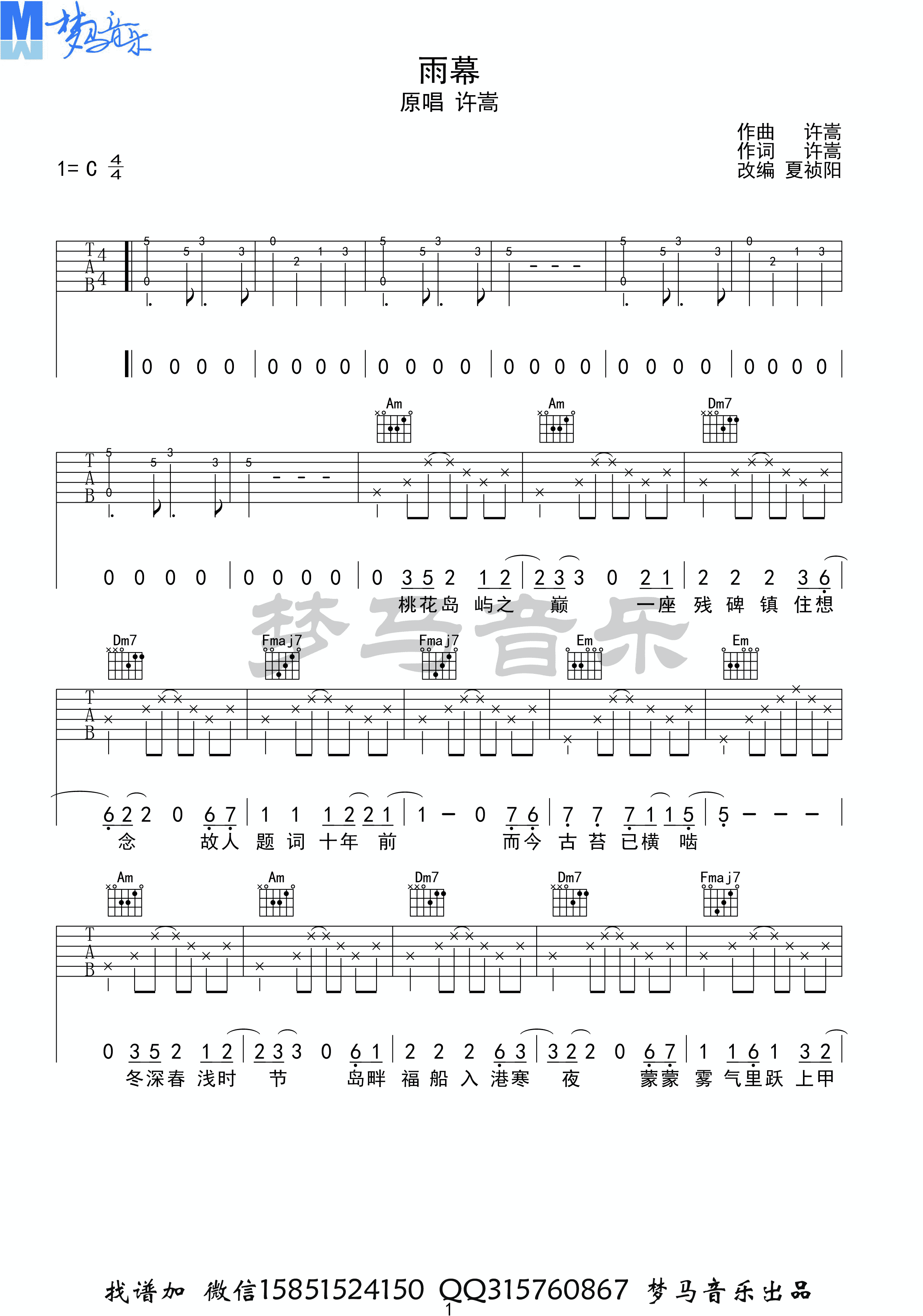 吉他许嵩 - 雨幕(端游《新天龙八部》主题曲) [弹唱] 吉他谱