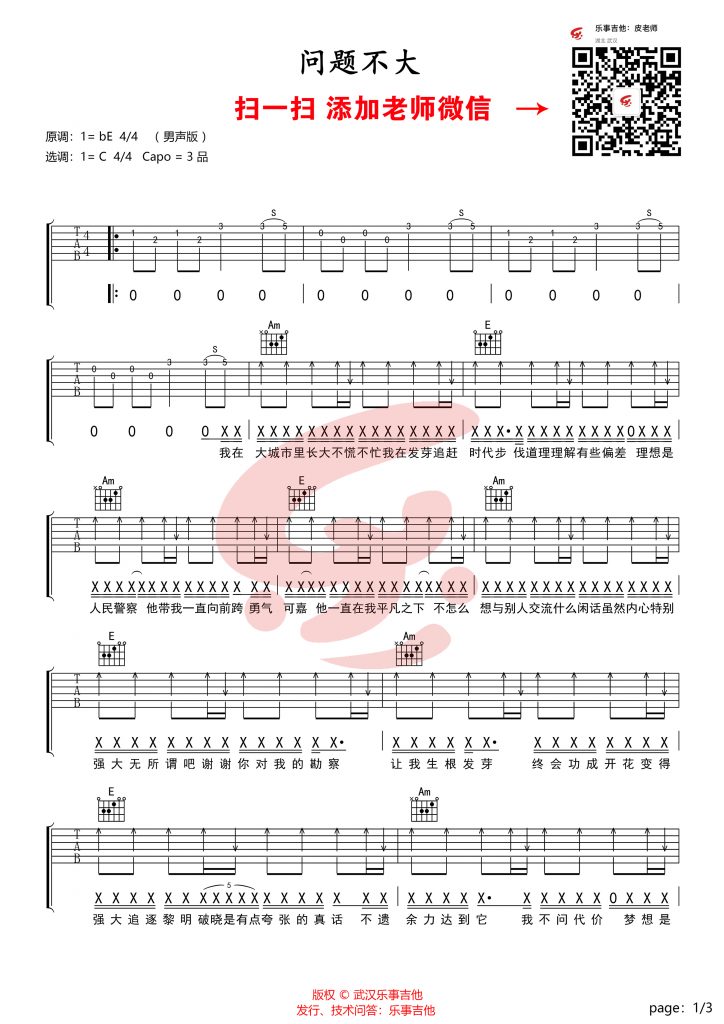 吉他李沛轩《问题不大》C调简单弹唱版