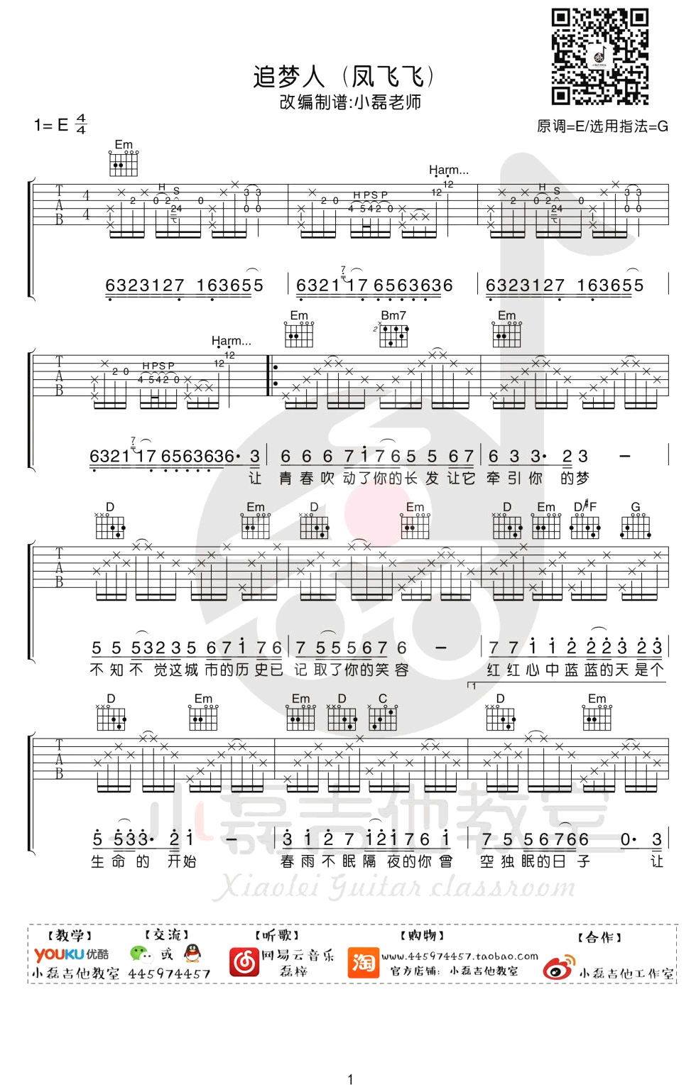 《追梦人》吉他谱,凤飞飞的一首经典代表歌曲,是由罗大佑写给三毛的作品,也是电视剧《雪山飞狐》片尾曲,已经成为一个时代无法抹去的记忆。追梦人六线谱,原调E选调G,小磊吉他编配分享...
