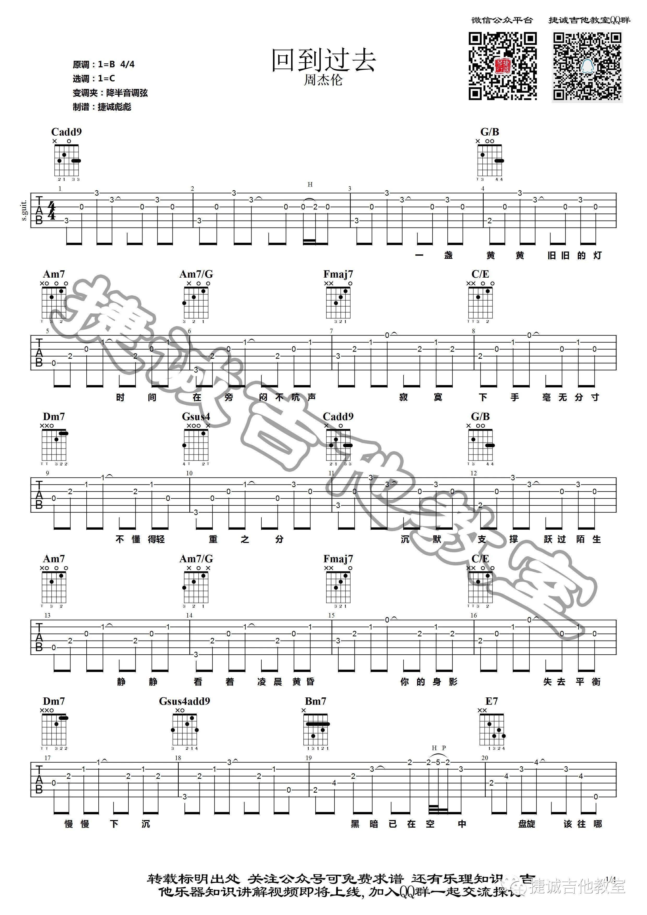 吉他周杰伦《回到过去》吉他谱_吉他弹唱视频示范_C调版