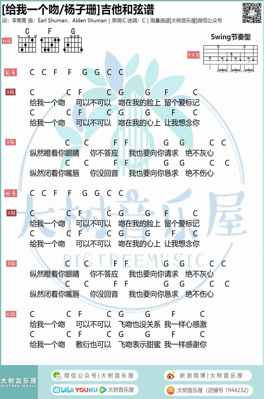 吉他给我一个吻吉他谱-杨子姗