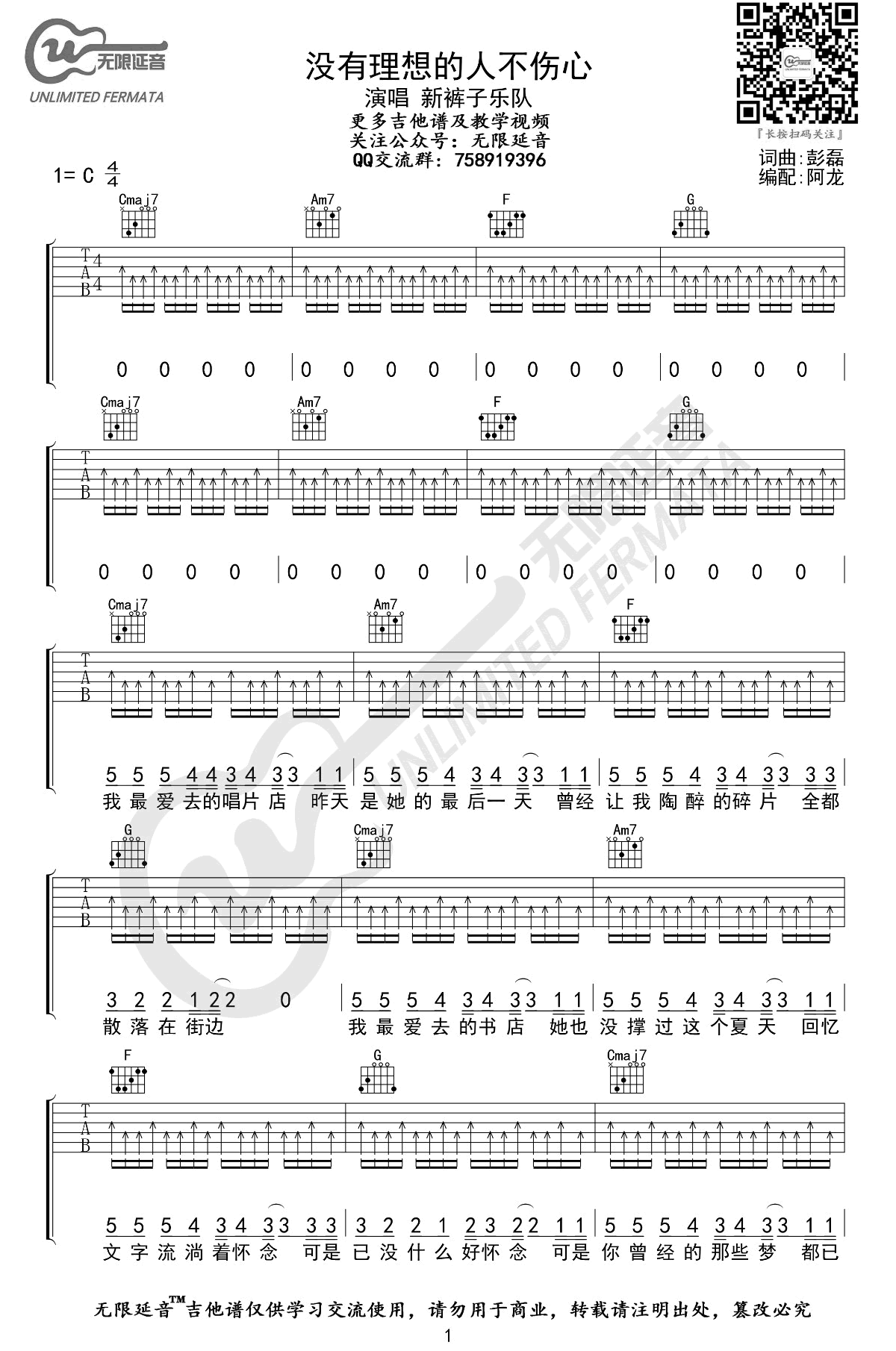 《没有理想的人不伤心》吉他谱,新裤子乐队演的一首歌,在《乐队的夏天》最后一期乐队HOT5比赛中也现场演唱,将他们心底压抑多年的情绪宣泄了出来。没有理想的人不伤心六线谱,C调指法,高清弹唱图片谱,无限延音编配出品...