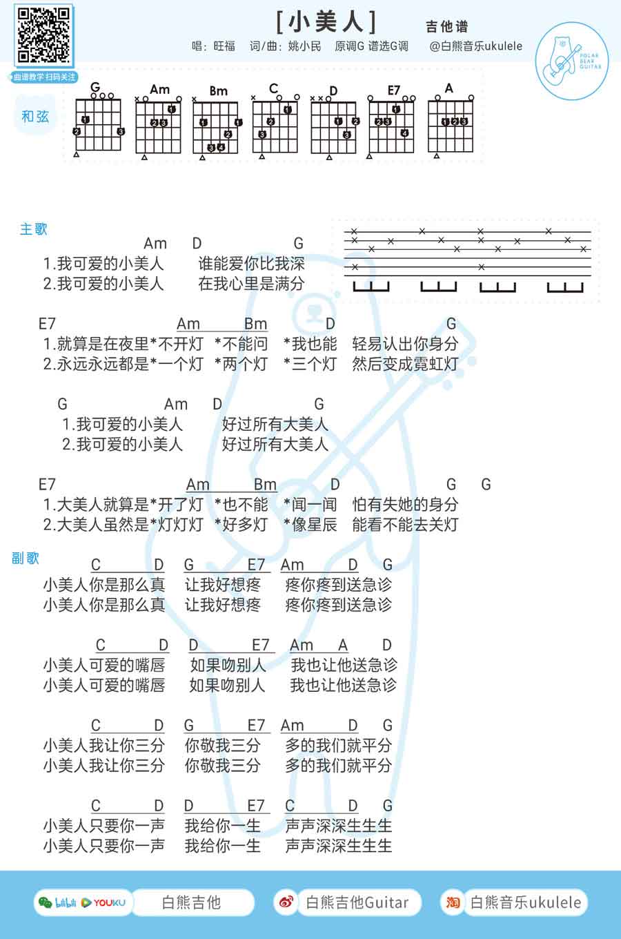 旺福小美人吉他谱,歌曲由姚小民作词,作曲,曲谱选原调:G和弦指法编配。小美人吉他弹唱谱,共1张图片六线谱。...