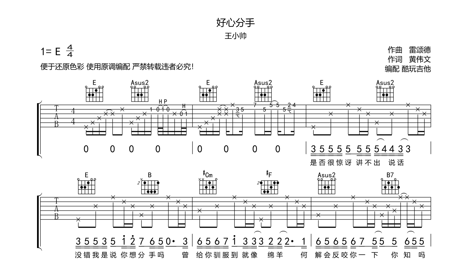 便于还原色彩达到更好的效果这里采用原调E调编配音频示范了前奏和第一遍的唱的部分间奏尾奏不再做示范...