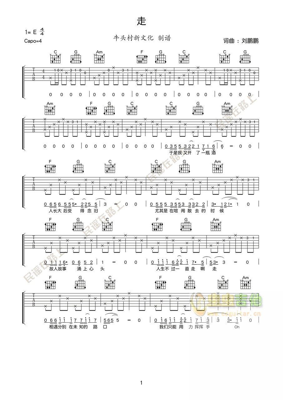 吉他 刘鹏鹏 >>《走》刘鹏鹏 吉他谱
