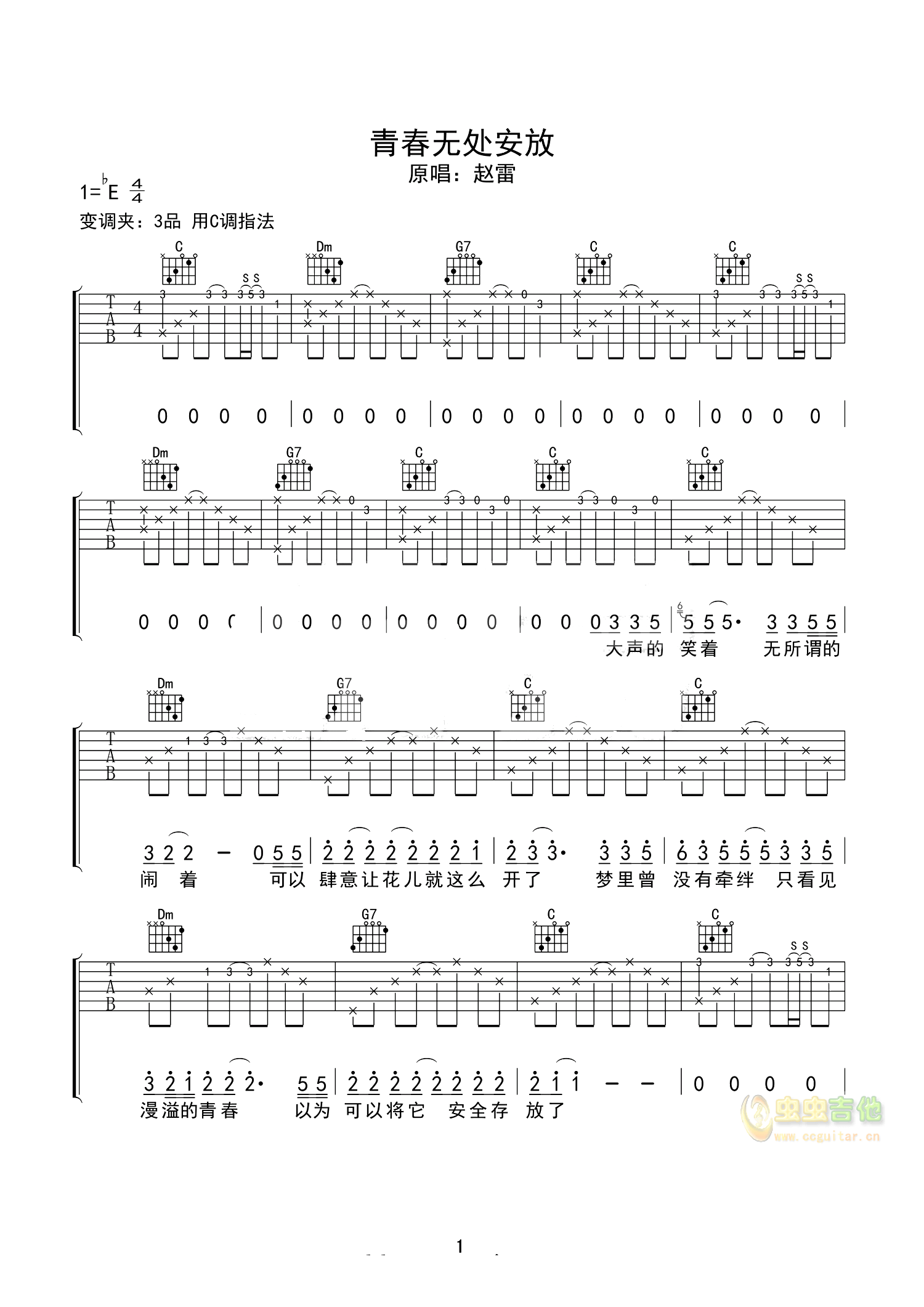 《青春无处安放》是赵雷早期的作品,能够从简单的歌词里,听出一个大男孩面对青春的迷茫和无措,这样慌乱的岁月,于他是过去了,于很多人而言还正在经历。本谱选调:C调Caps:夹三品...