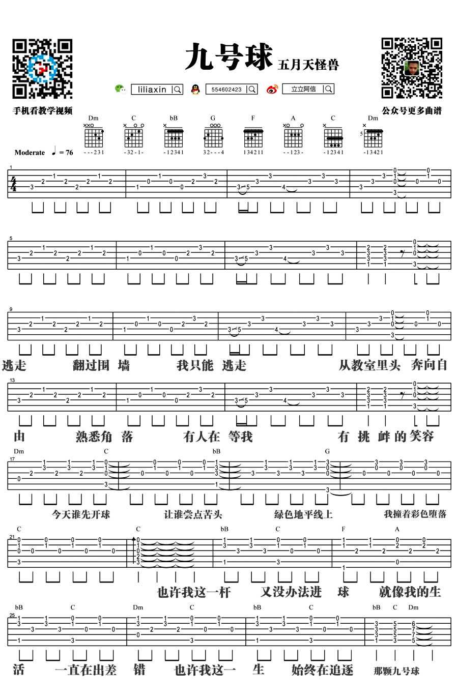 五月天九号球吉他谱,五月天怪兽献唱电影《逆转胜》主题曲《九号球》,歌曲是由阿信作词,怪兽作曲,是一首摇滚风格的歌曲,感谢立立阿信提供曲谱和弹唱教学。...