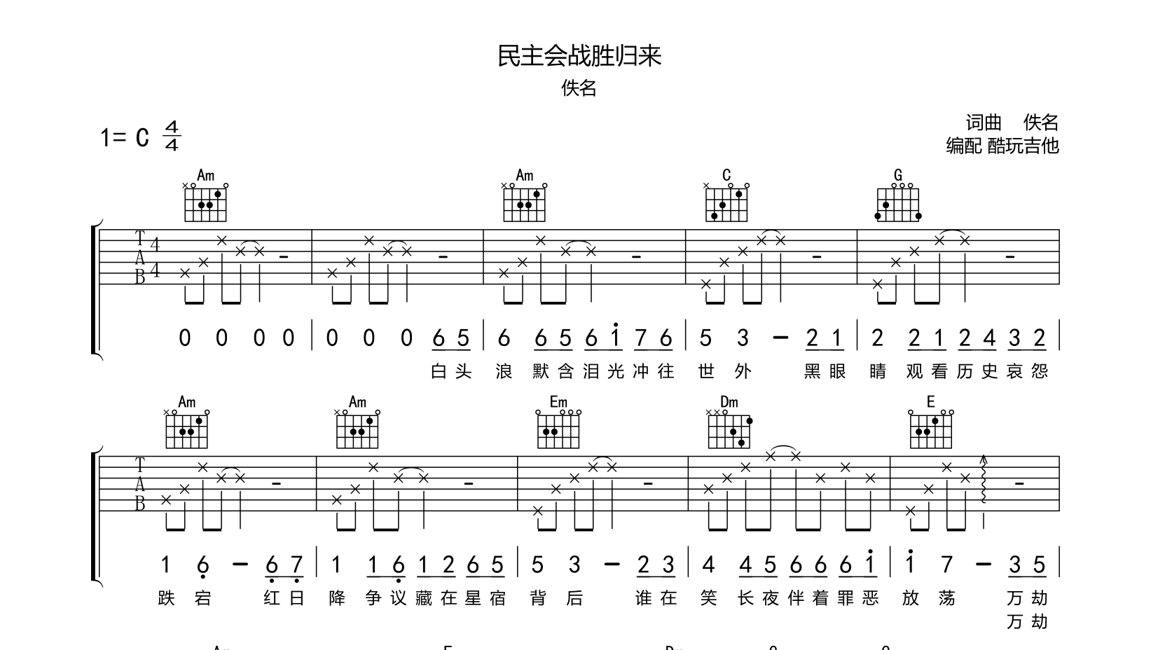 吉他民主会战胜归来 吉他谱 佚名
