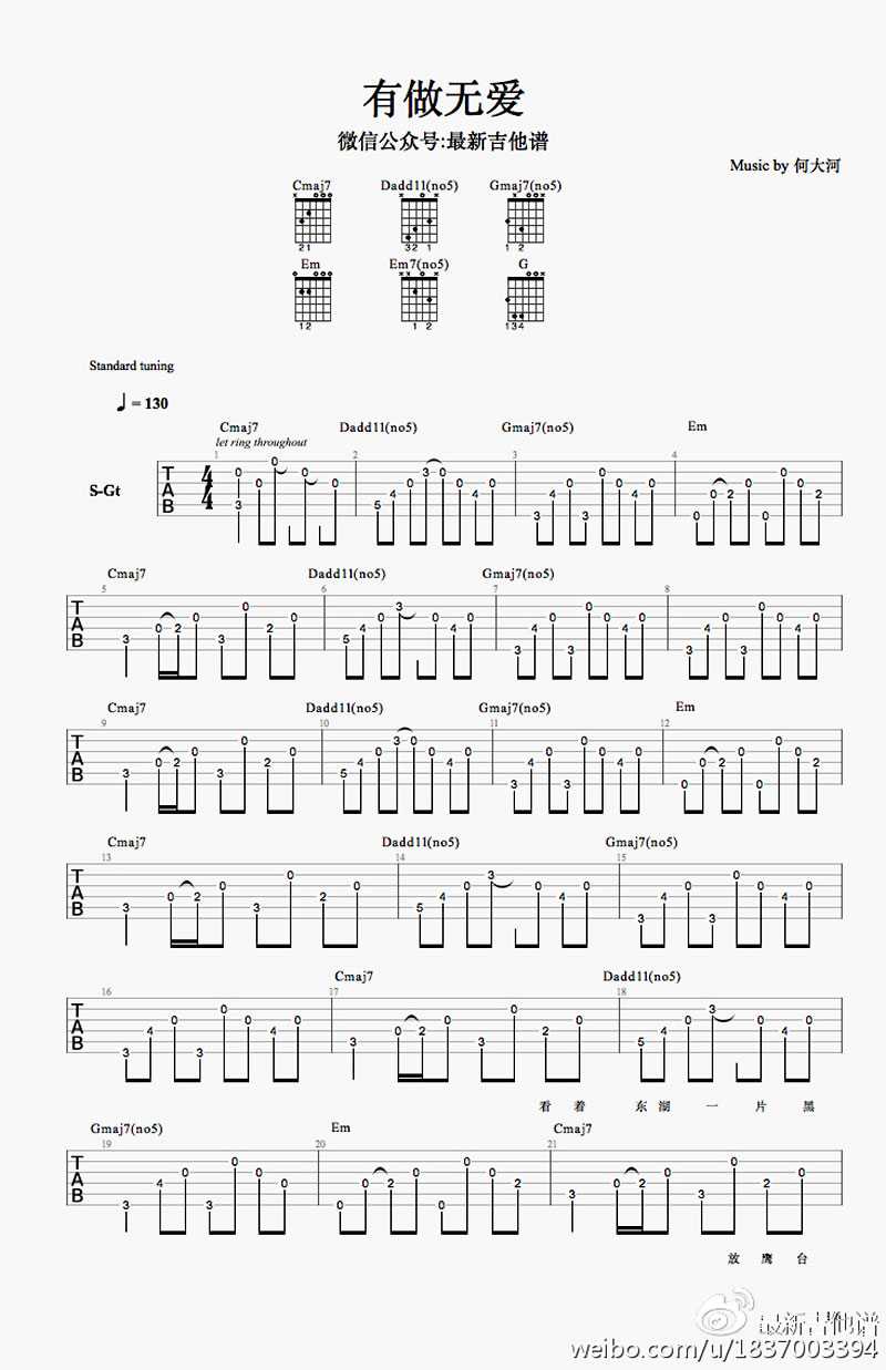 吉他有做无爱吉他谱-何大河《有做无爱》吉他弹唱谱