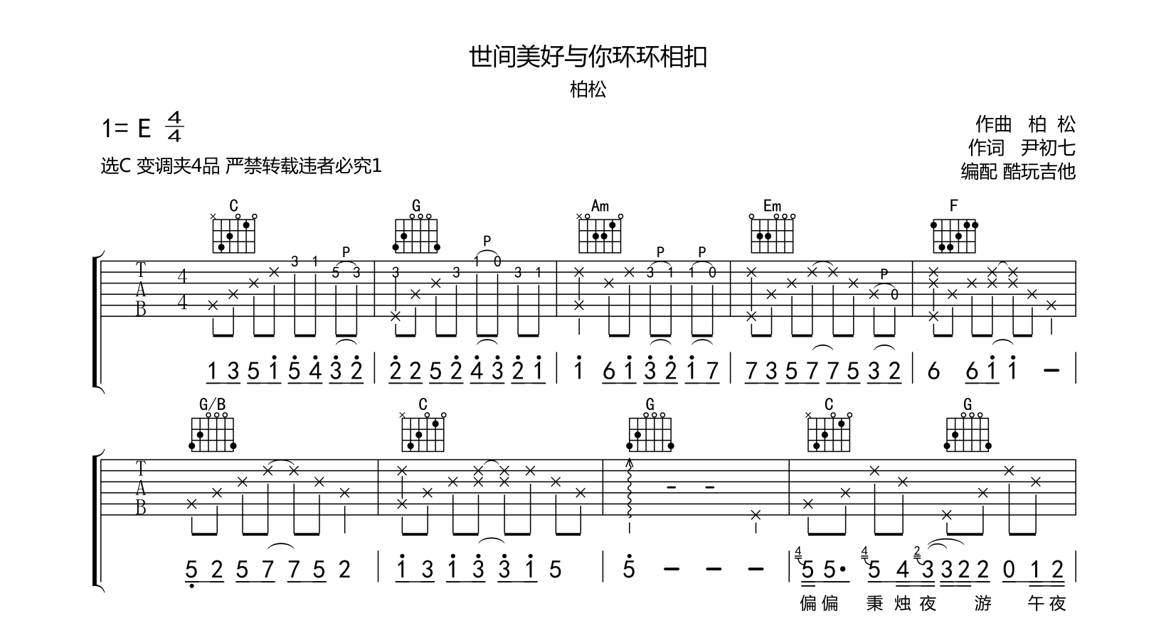 吉他世间美好与环环相扣 吉他谱 柏松 还原编配