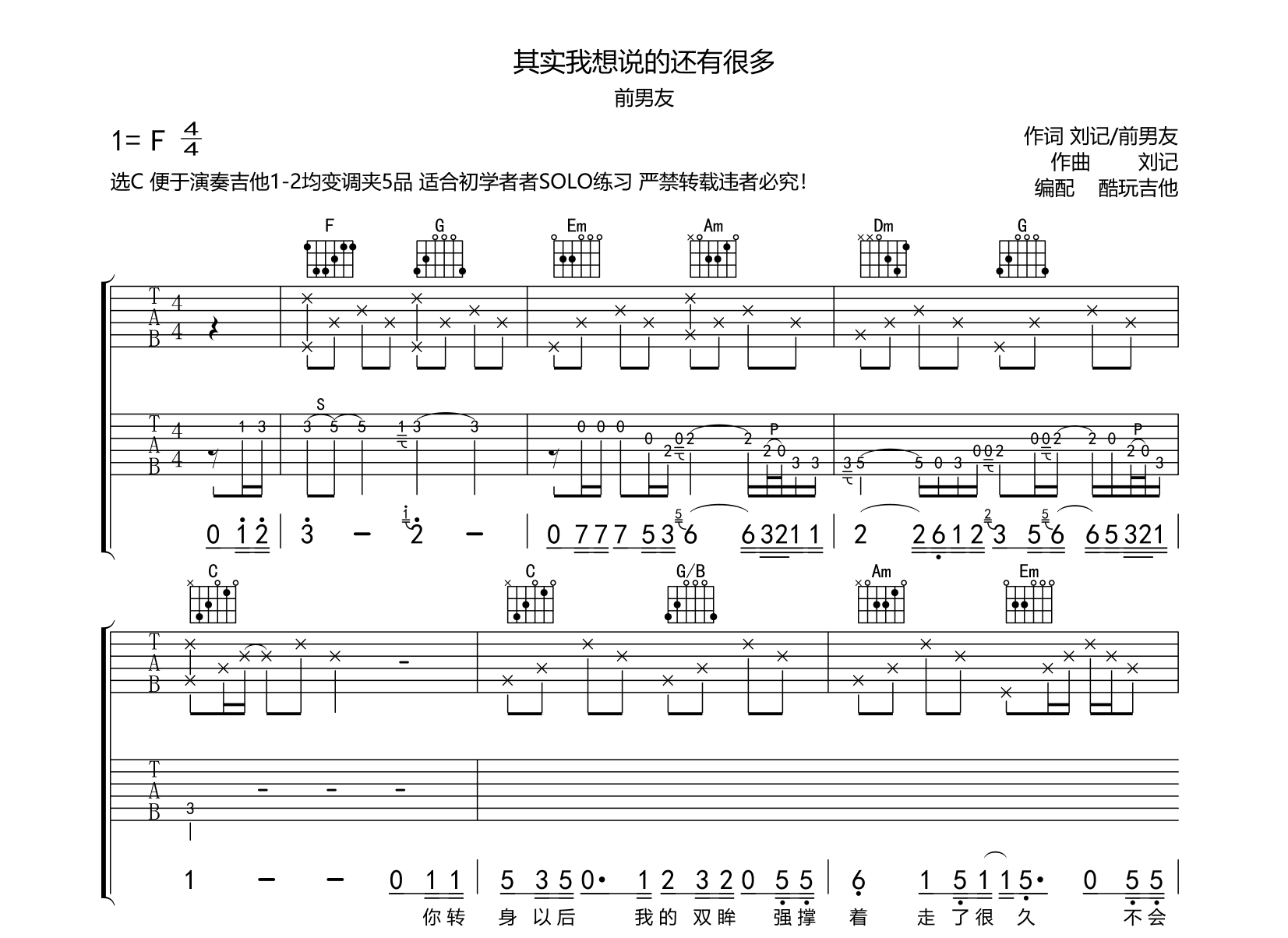 吉他其实我想说的还有很多 吉他谱 前男友 附SOLO谱