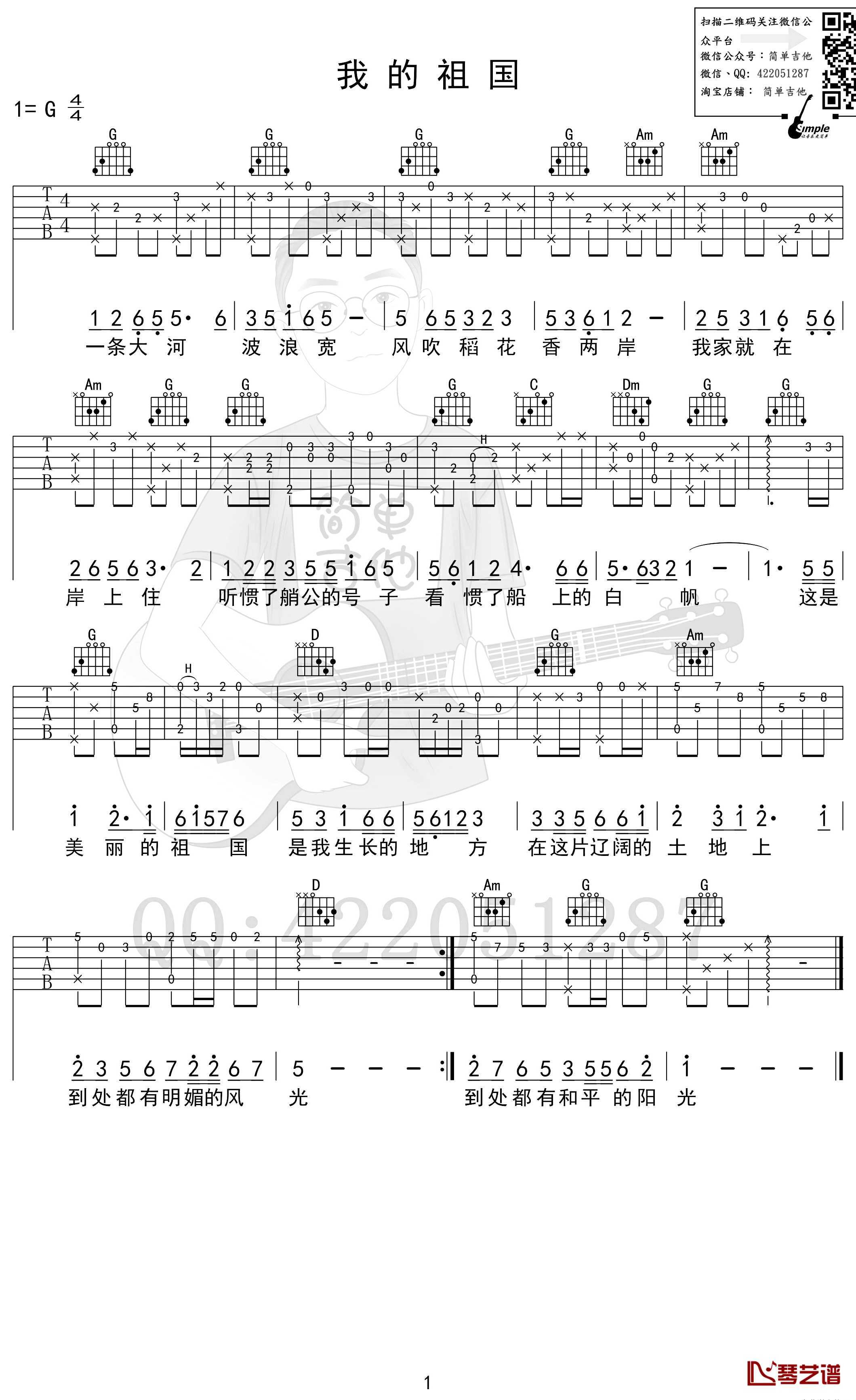 吉他我和我的祖国吉他谱_G调弹唱谱_高清图片谱 简单版