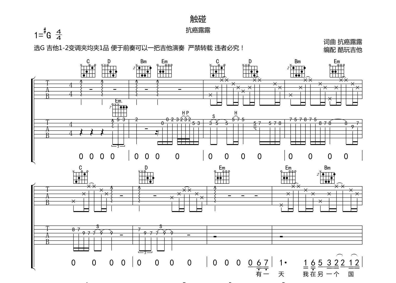 吉他触碰 吉他谱 抗癌露露 附带前奏SOLO 祁隆编曲