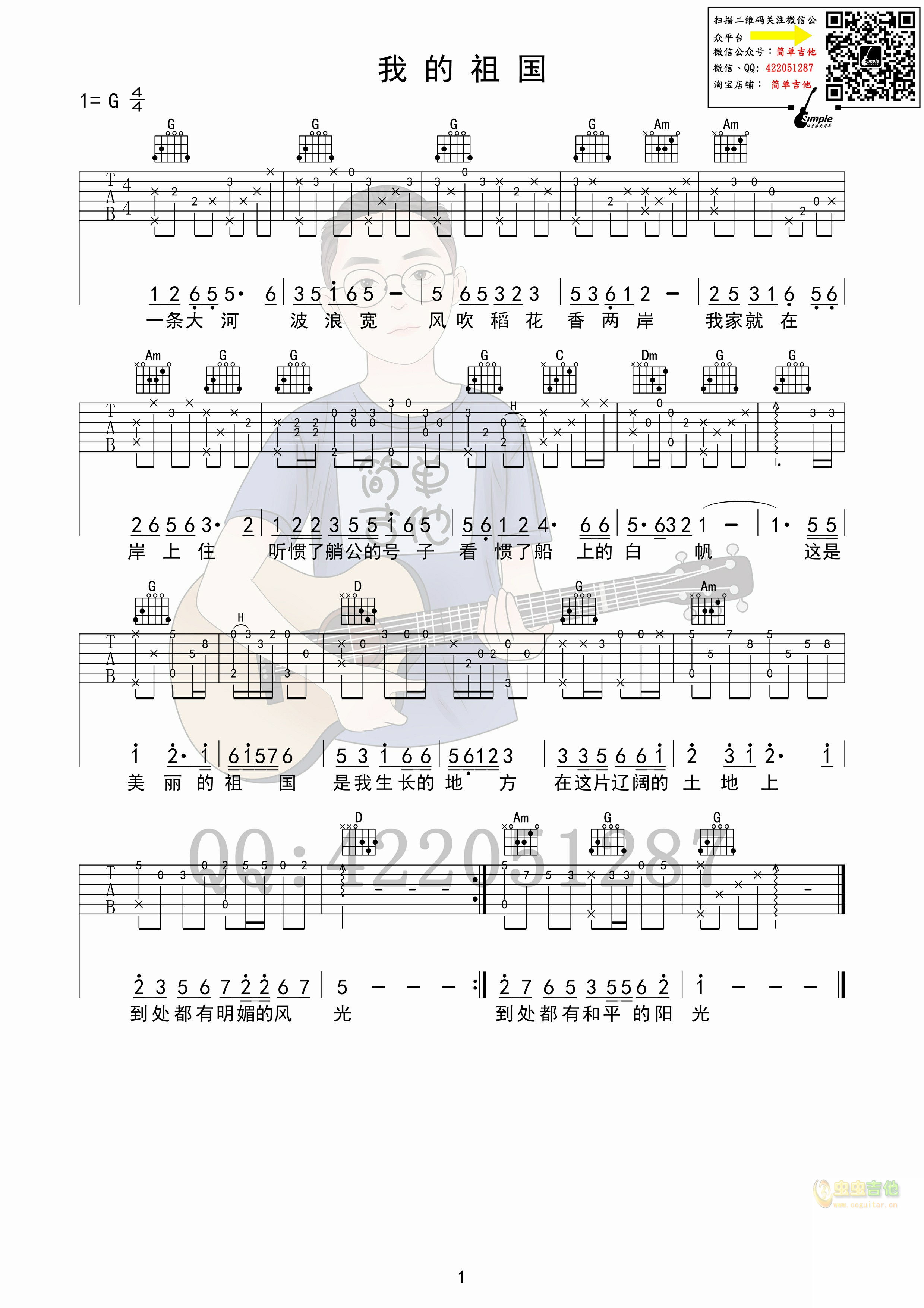 我和我的祖国吉他谱,一首广为传唱的爱国主题歌曲,我和我的祖国六线谱,G调指法,变调夹夹第二品,吉他弹唱图片谱高清版,夏海洋编配...