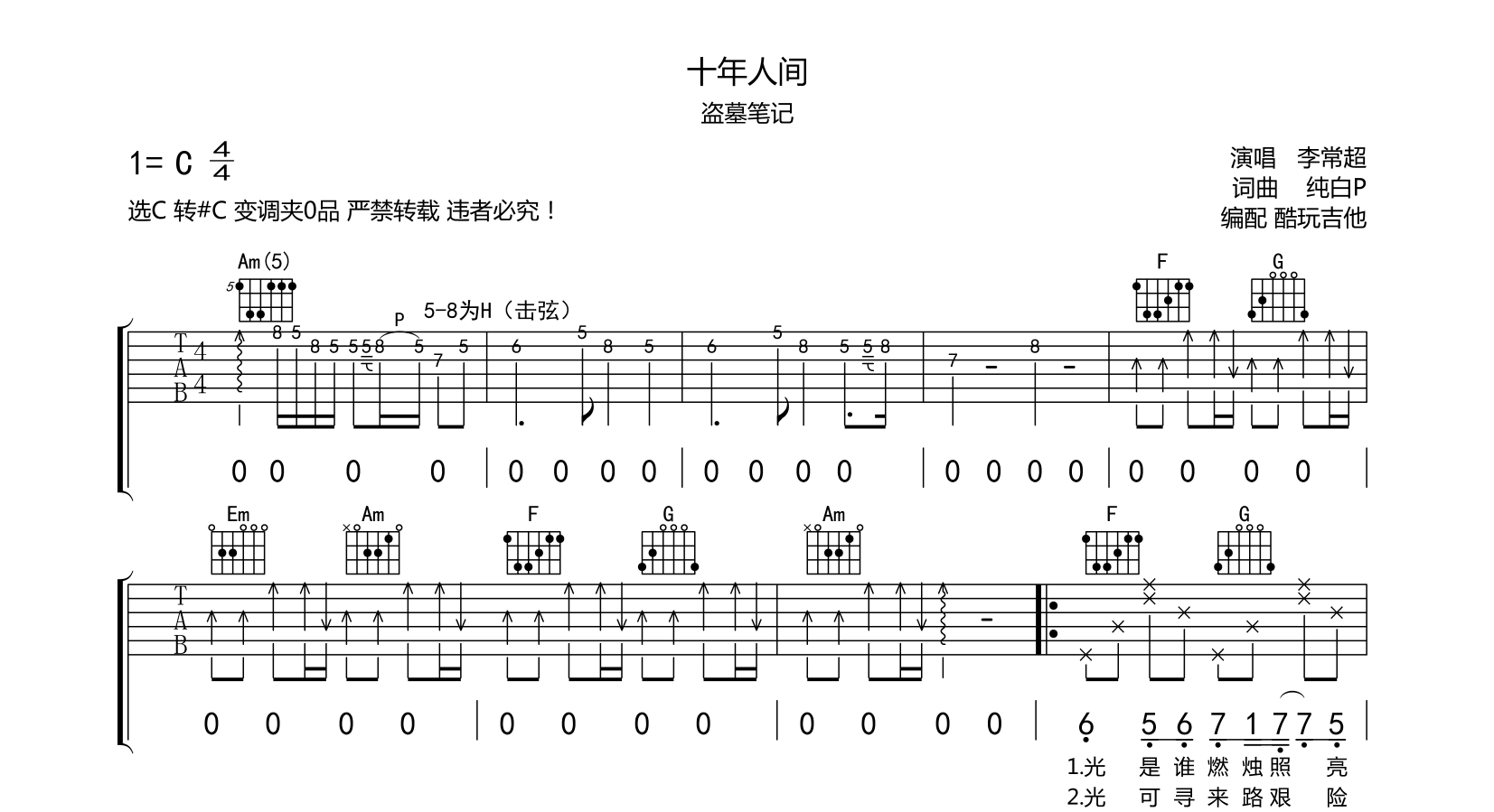 吉他十年人间(盗墓笔记) 吉他谱 李常超 古风曲目 琴友订制