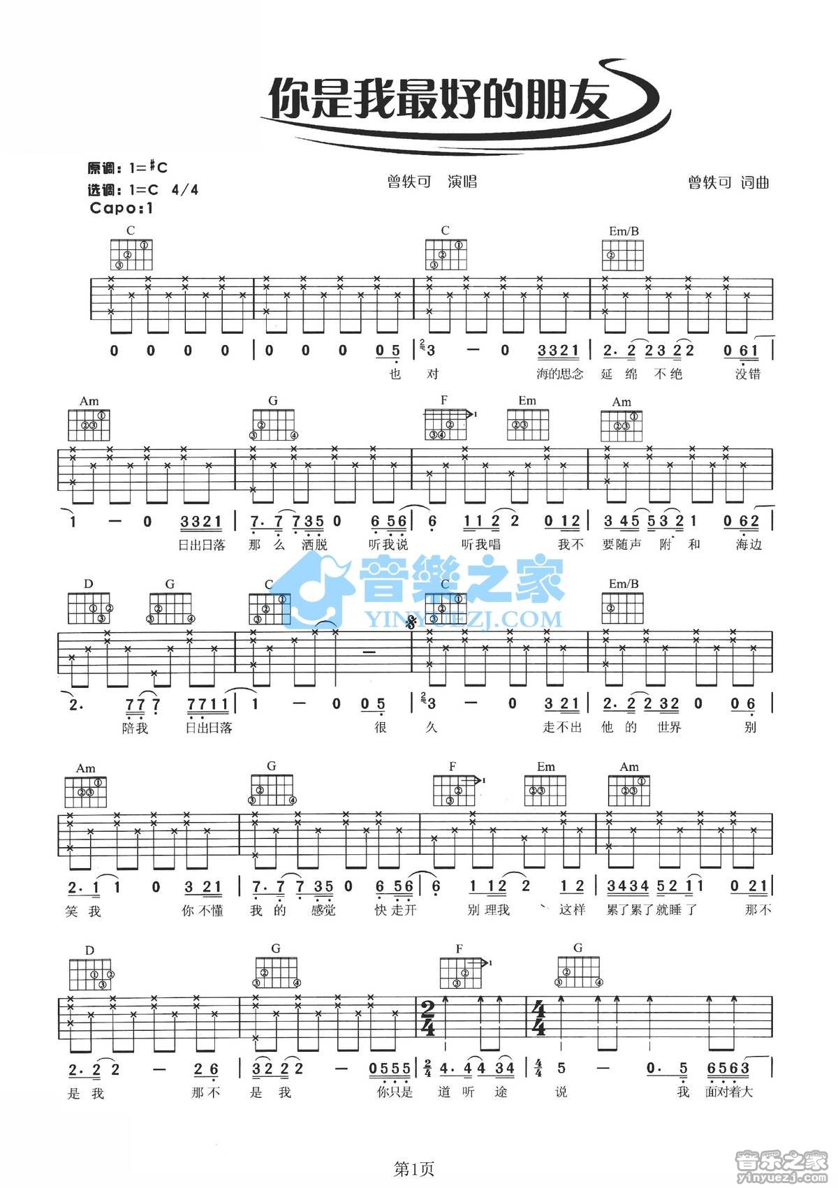 吉他曾轶可《你是我最好的朋友》吉他谱_吉他弹唱谱
