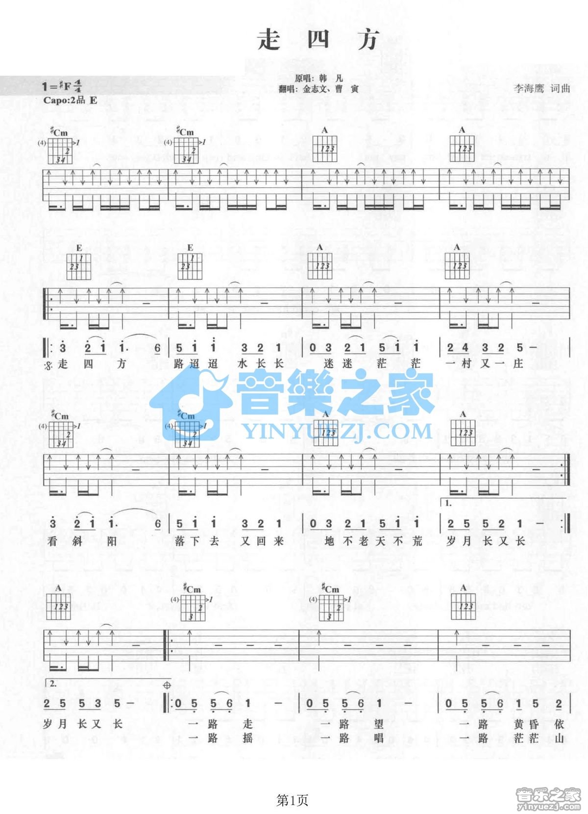 吉他金志文/曹寅《走四方》吉他谱_吉他弹唱谱