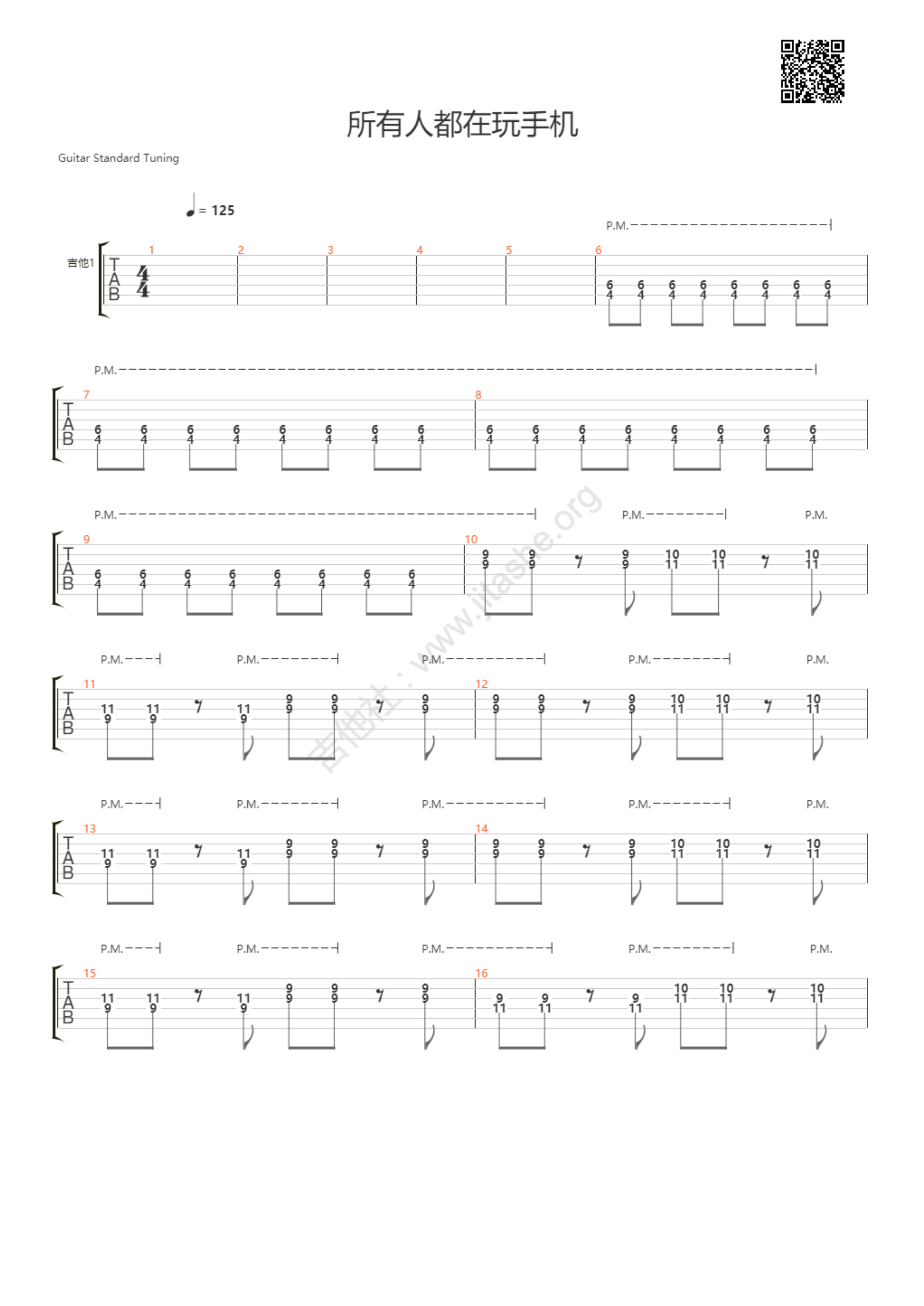 《所有人都在玩手机》吉他谱_吉他独奏谱...