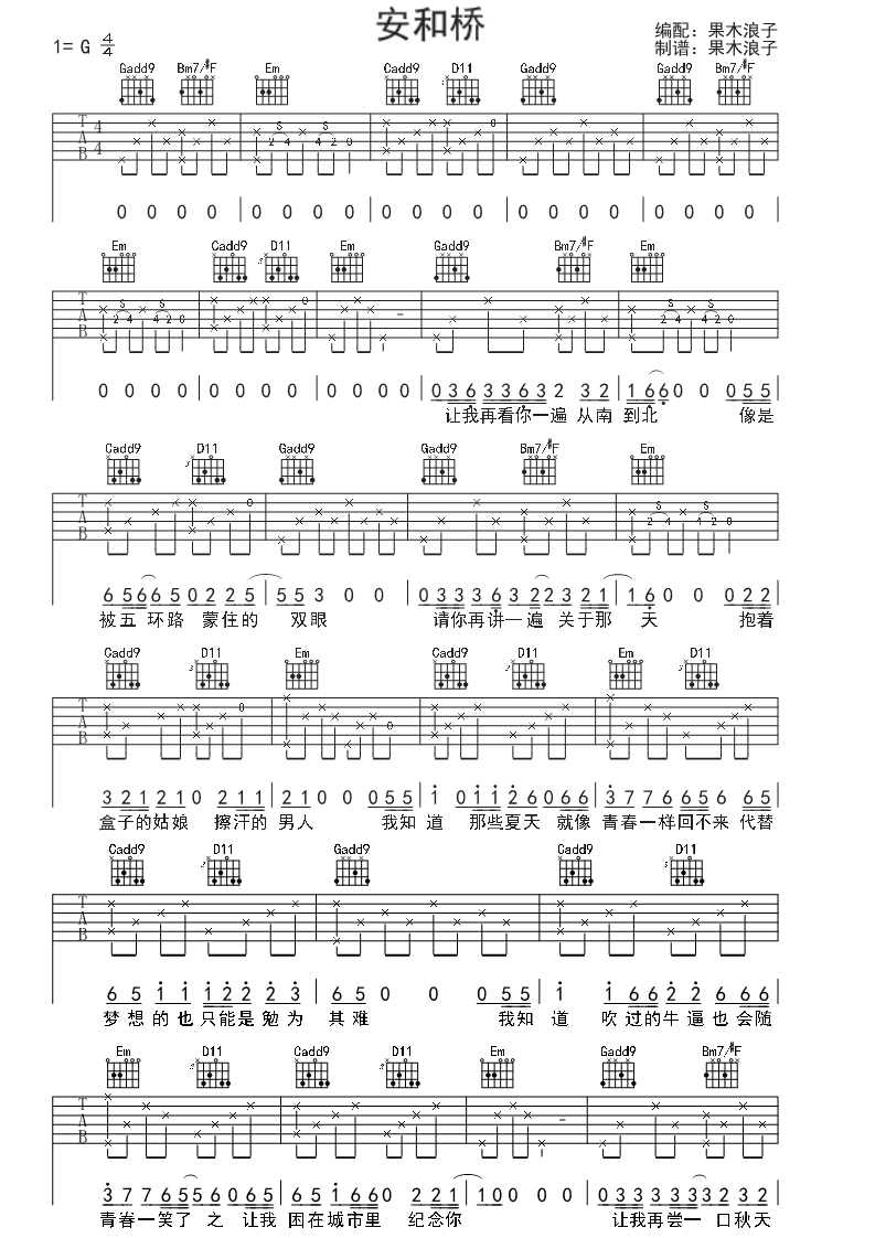 吉他宋冬野《安河桥》吉他谱_吉他弹唱谱_果木浪子编配