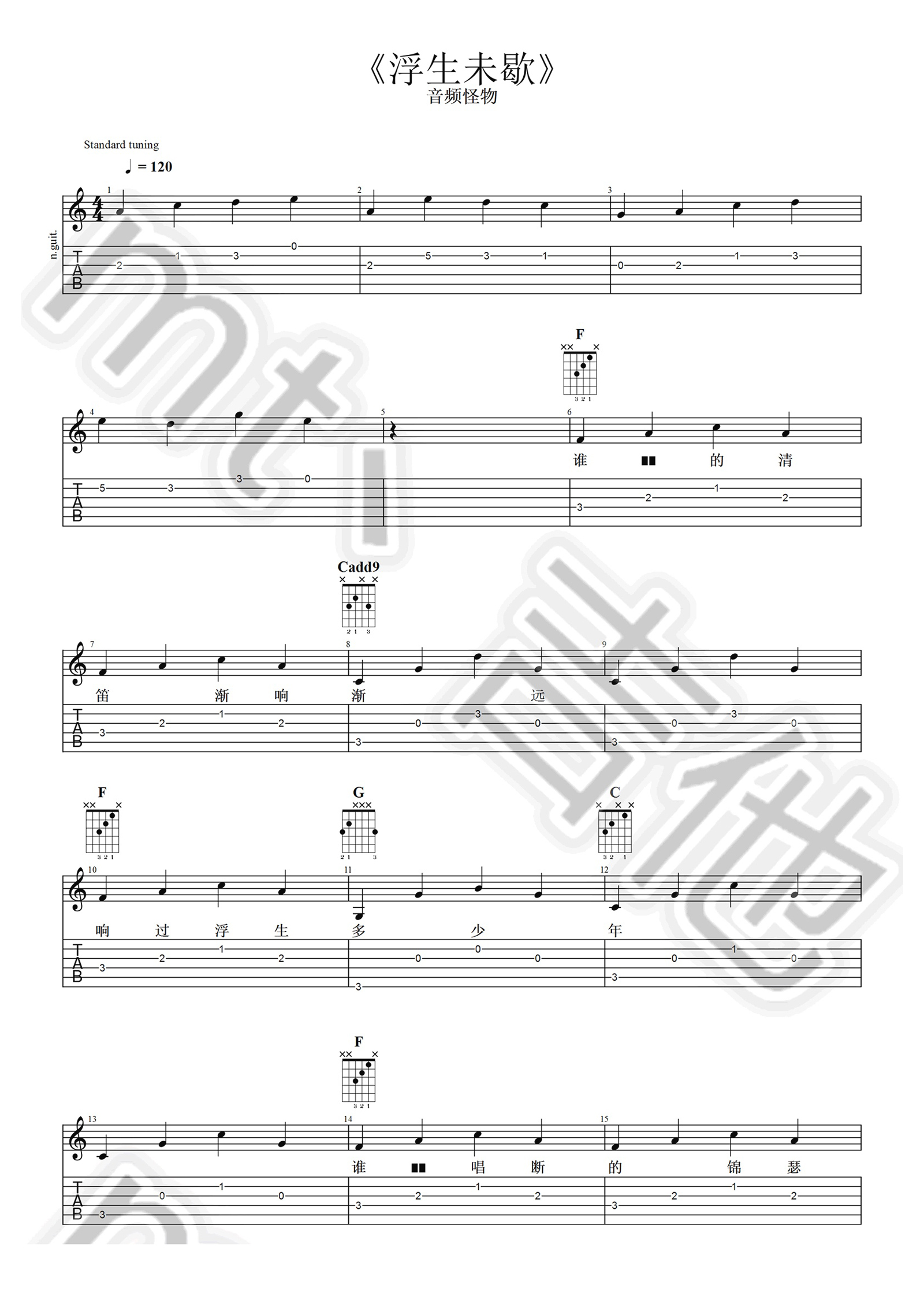 吉他音频怪物《浮生未歇》吉他谱_吉他弹唱谱_MT吉他编配