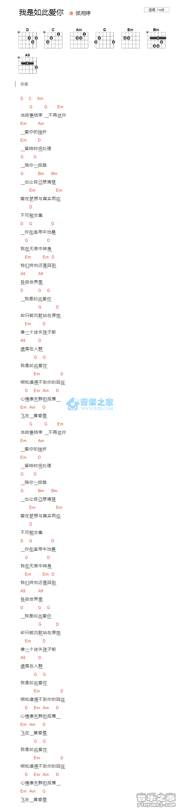 吉他侯湘婷《我是如此爱你》吉他谱_吉他弹唱谱