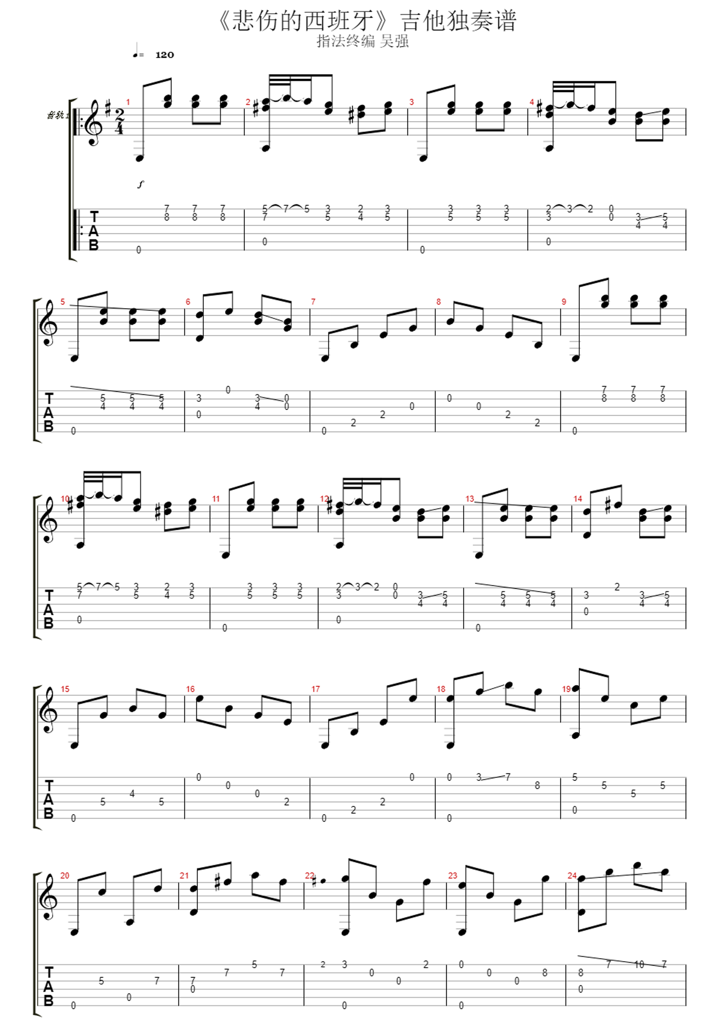 《悲伤的西班牙》吉他谱_吉他独奏谱...