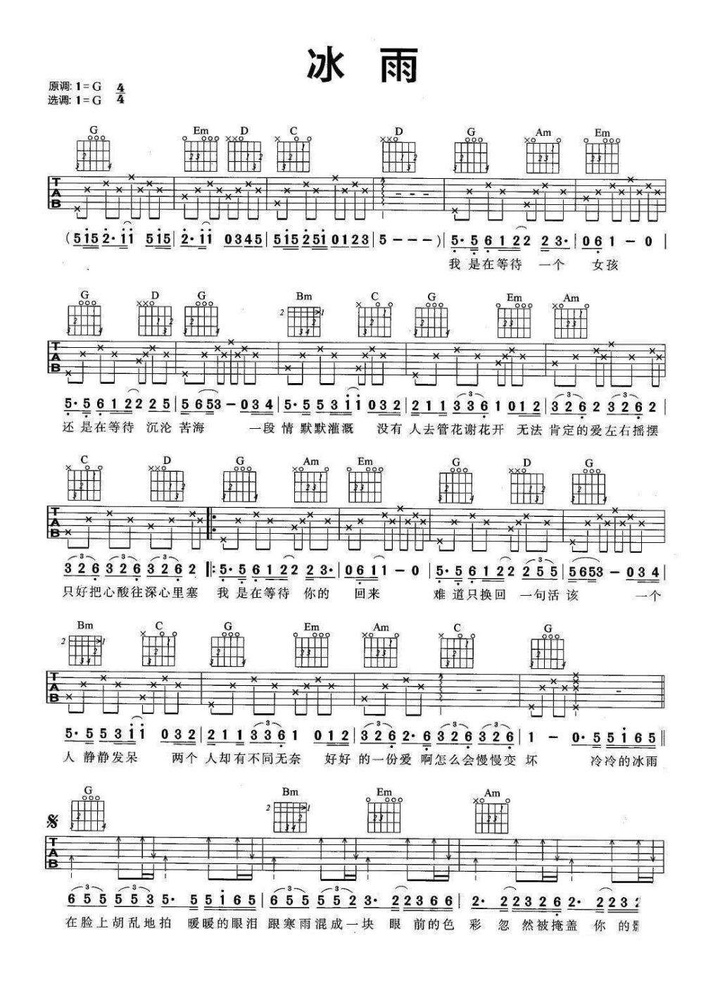 吉他刘德华《冰雨》吉他谱_吉他弹唱谱