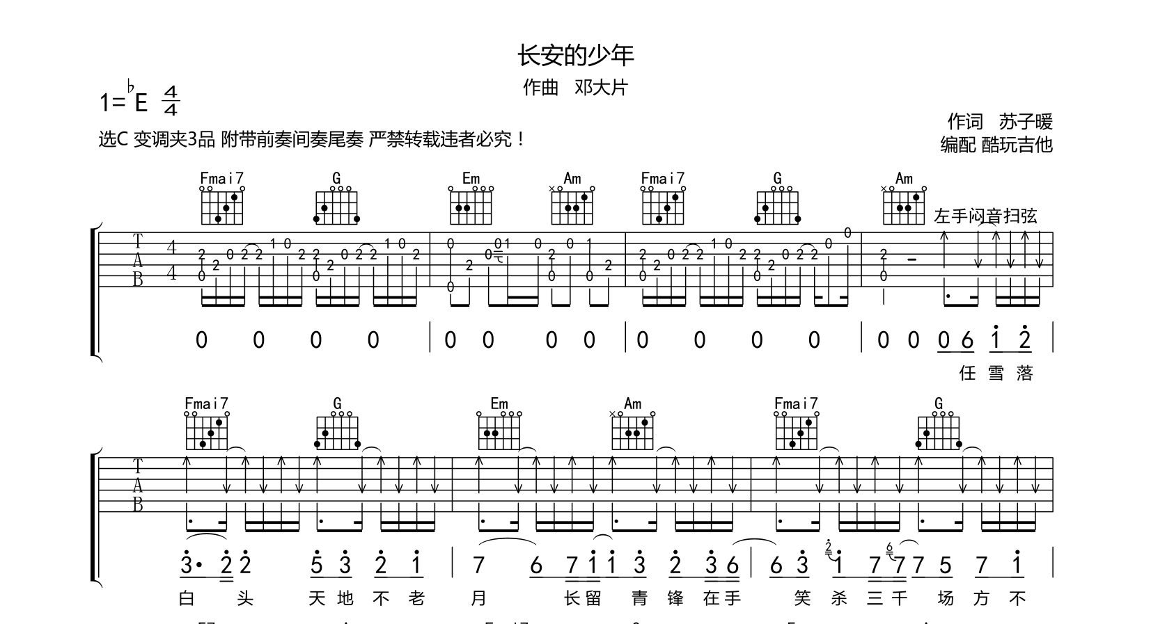 吉他长安的少年 吉他谱 小魏/国风堂最新单曲 古风