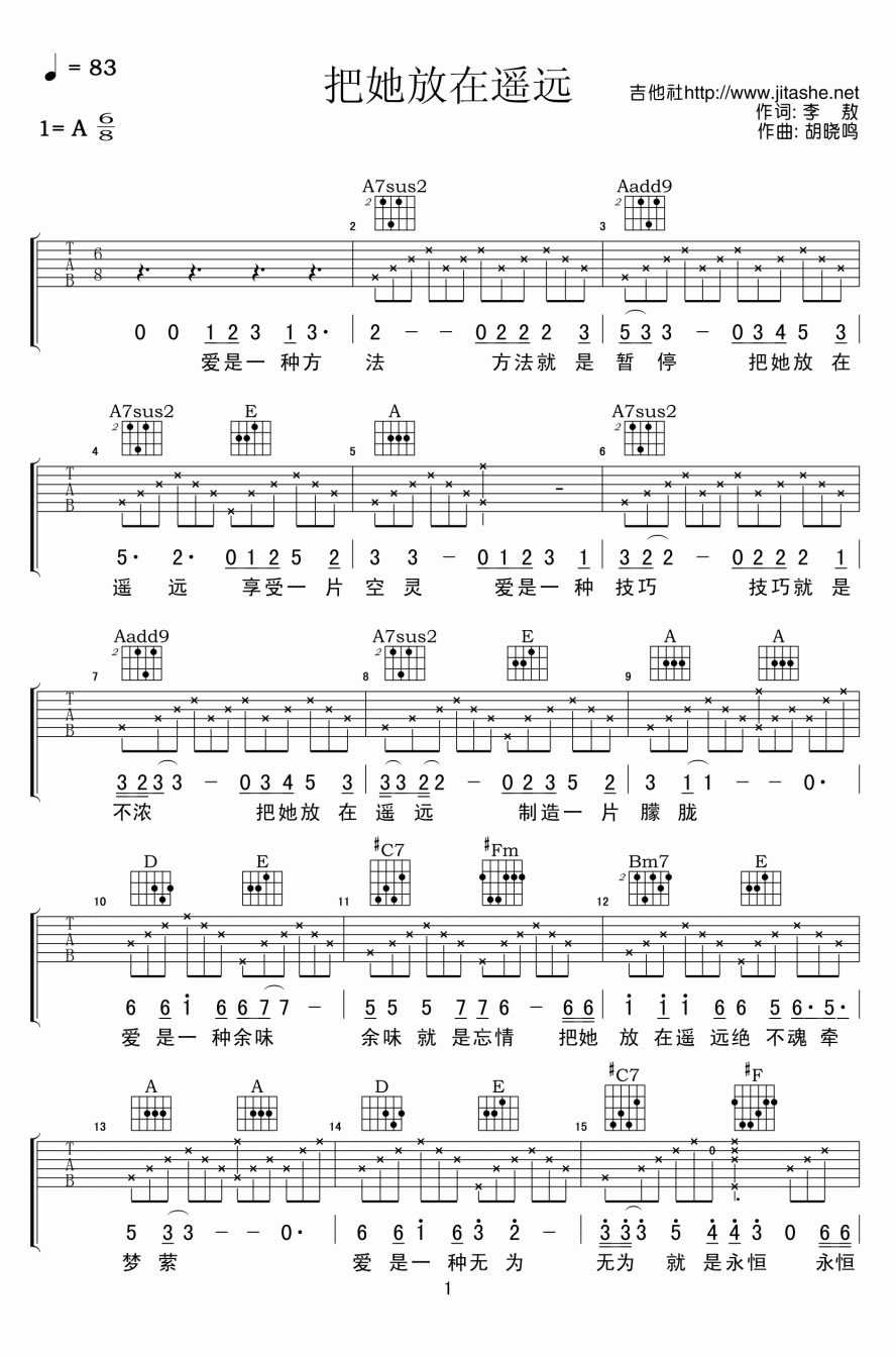 吉他把她放在遥远吉他谱-纣王老胡-六线谱图片高清版