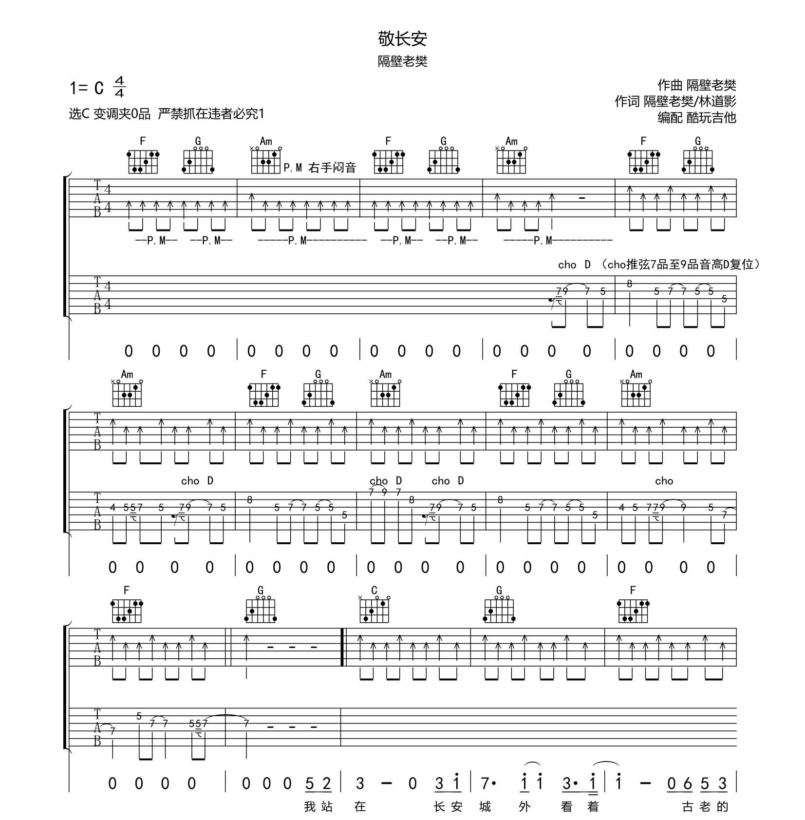 吉他敬长安 吉他谱 隔壁老樊 原版编配