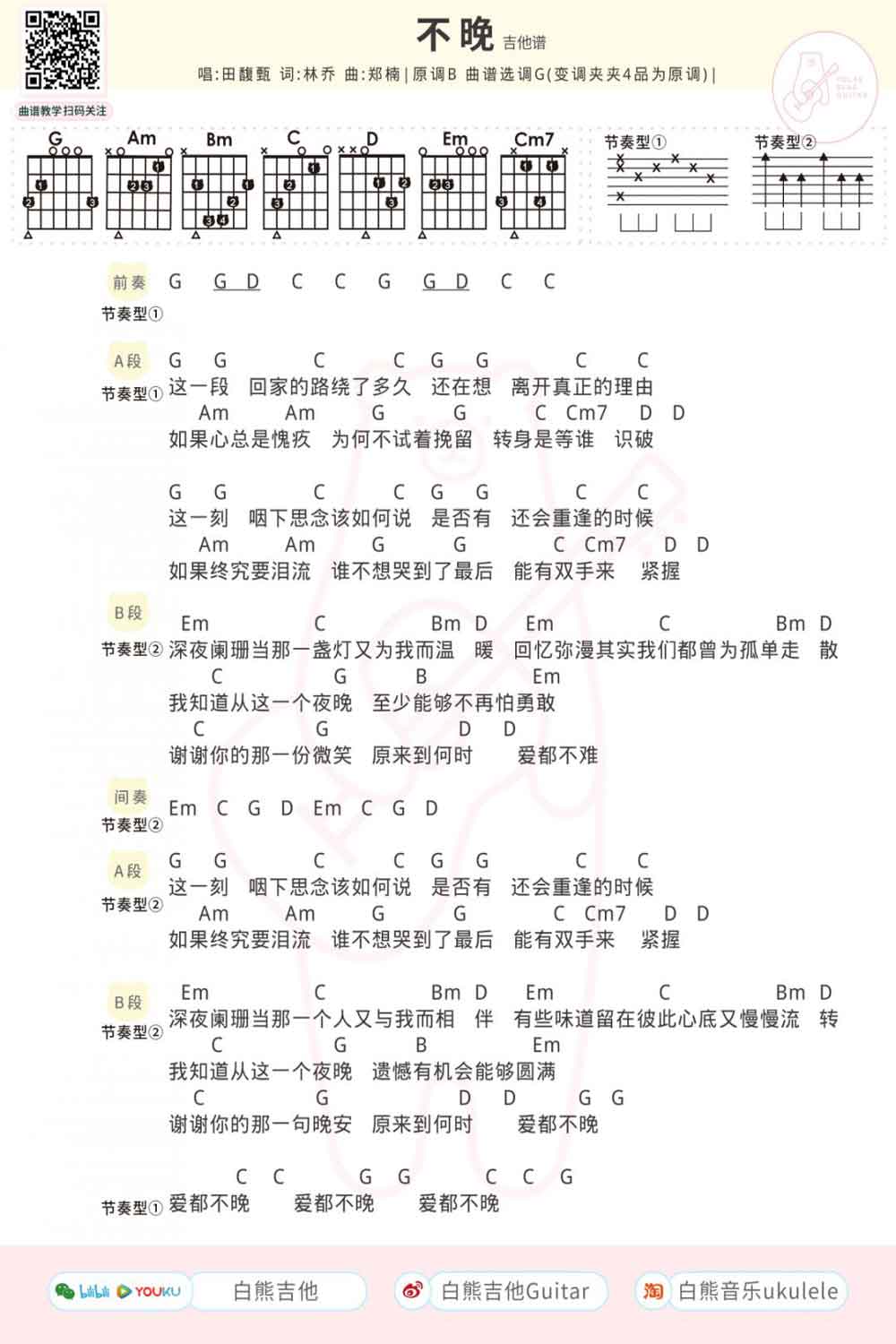 吉他不晚吉他谱-田馥甄