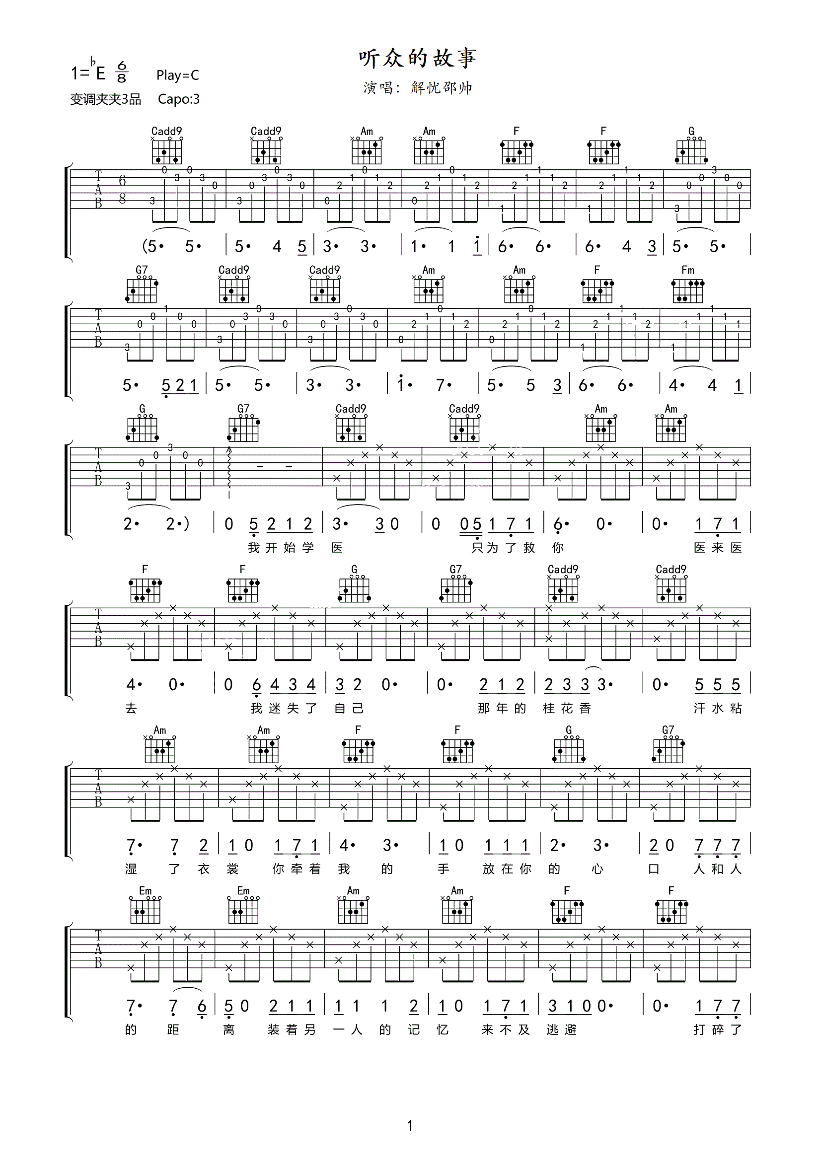 吉他听众的故事吉他谱-解忧邵帅
