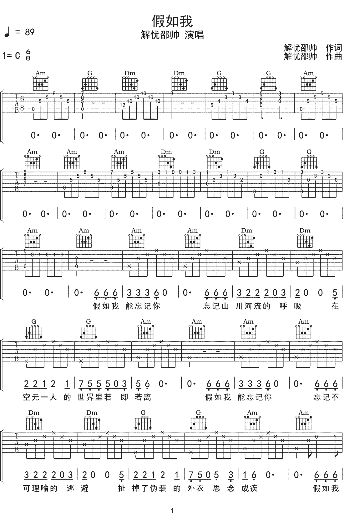 吉他假如我吉他谱-解忧邵帅