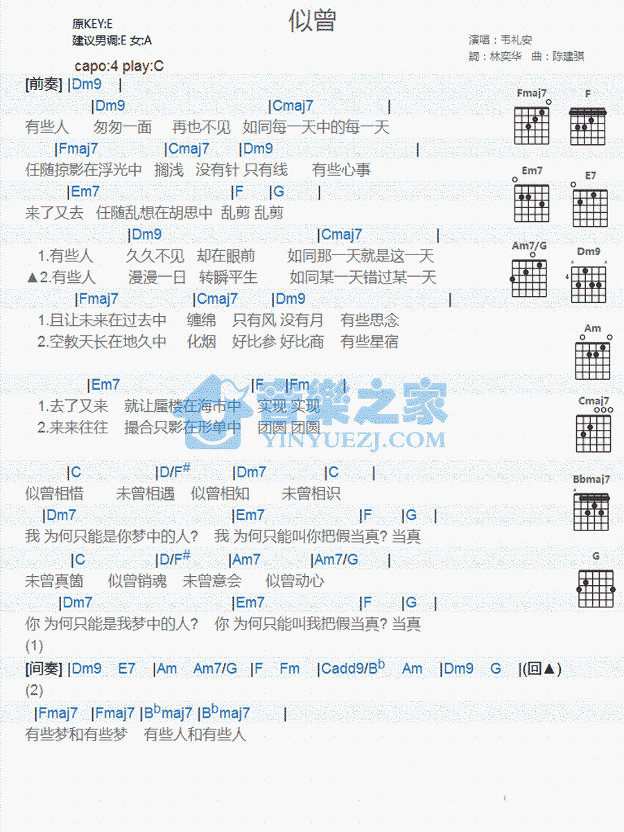 吉他似曾吉他谱-韦礼安 和弦谱